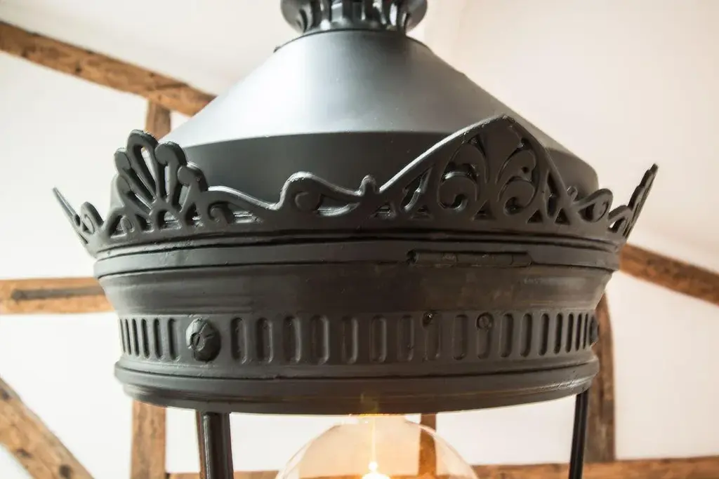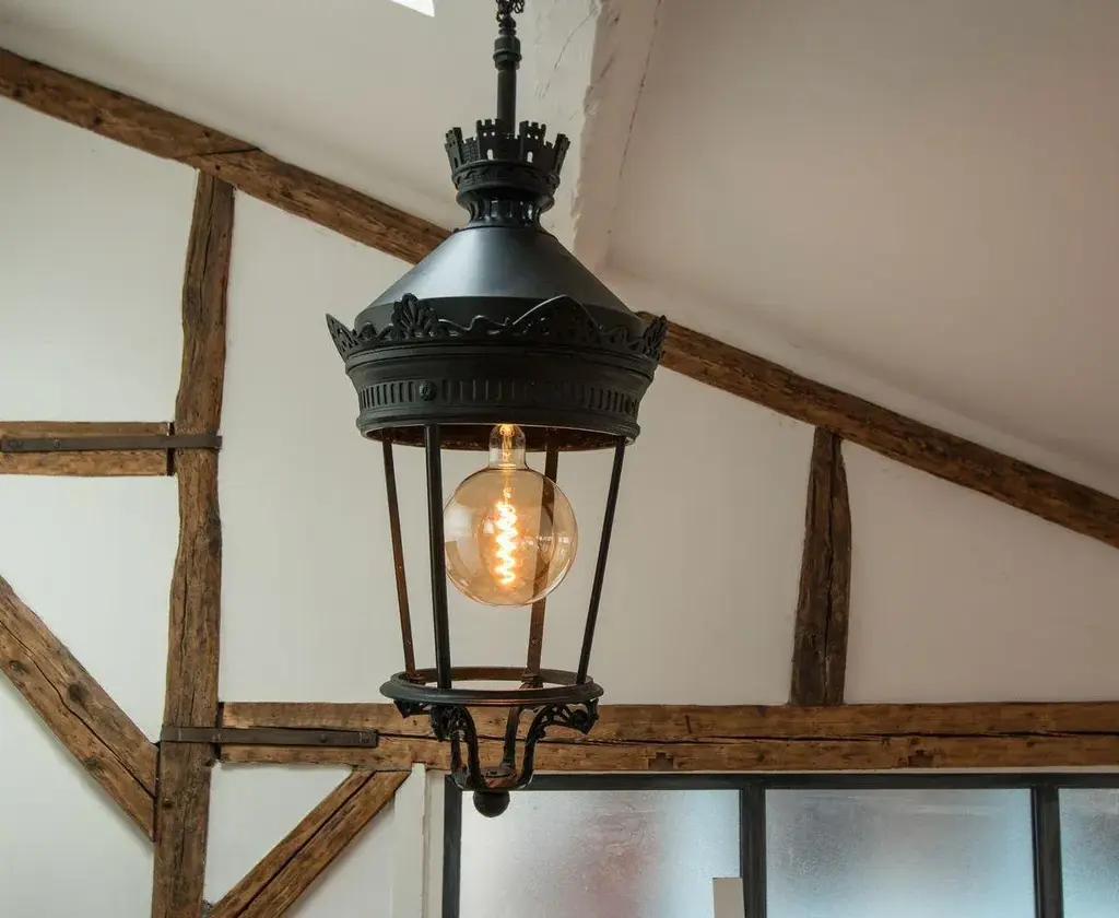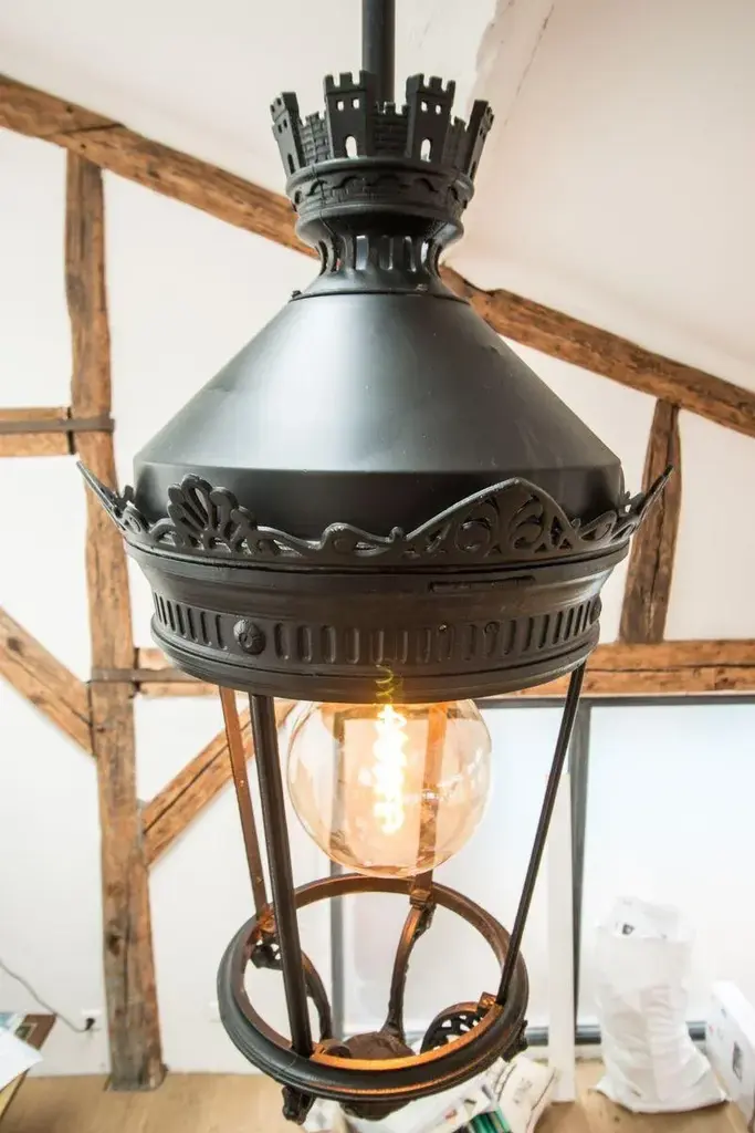 Large street lamp of the brand Lenzi. Model "Street of Peace" cast matt black aluminum. Electrification refurbished, classic bulb screws (E27). This piece has an attribution mark, I am sure that it is completely authentic and take full responsibility for any authenticity issues arising from misattribution, Up to 250V (Europe/UK Standard).The wiring of this item may be original and might need replacement, if not specified otherwise.