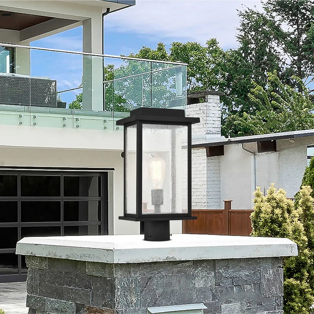 Sullivan Collection Outdoor 17 Inch Post Light Pole Lantern - Matte Black Finish with Clear Seeded Glass