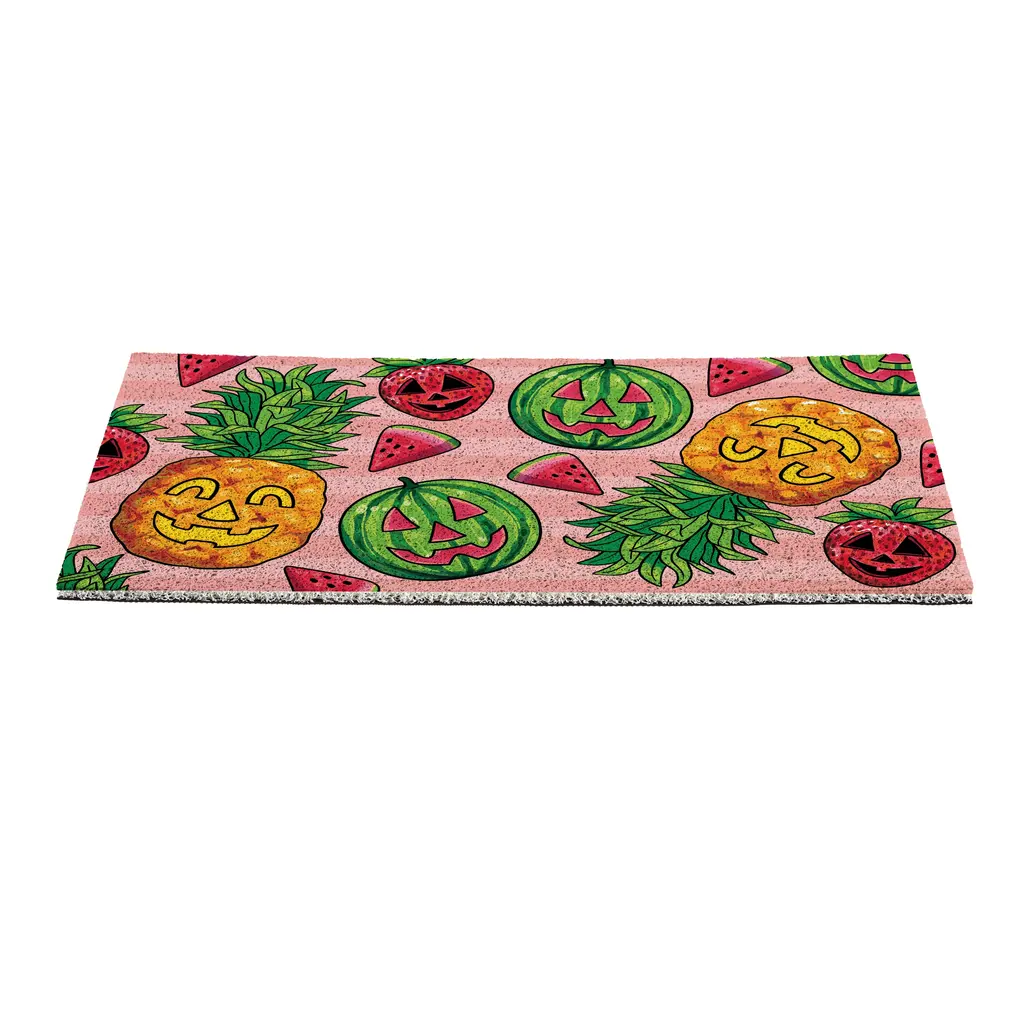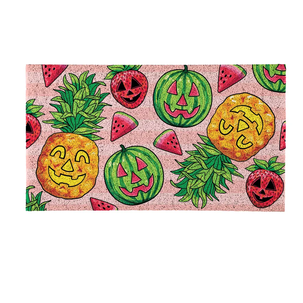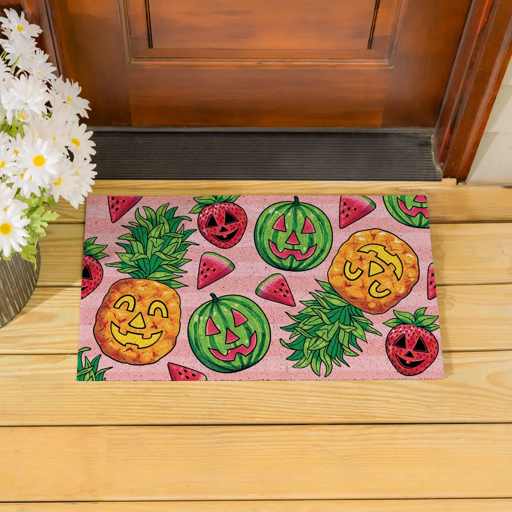 Who says jack-o’-lanterns are just for pumpkins? Say aloha to spooky season with a fruity flair! This PVC Mat features carved watermelons, pineapples, and strawberries, each one rocking their own ghoulish grin. It’s the perfect welcome mat for those who love a little haunt with their heat. Durable, vibrant, and full of seasonal sass, this decor brings the tropical terror right to your doorstep. Because why settle for scary or sweet when you can have both?