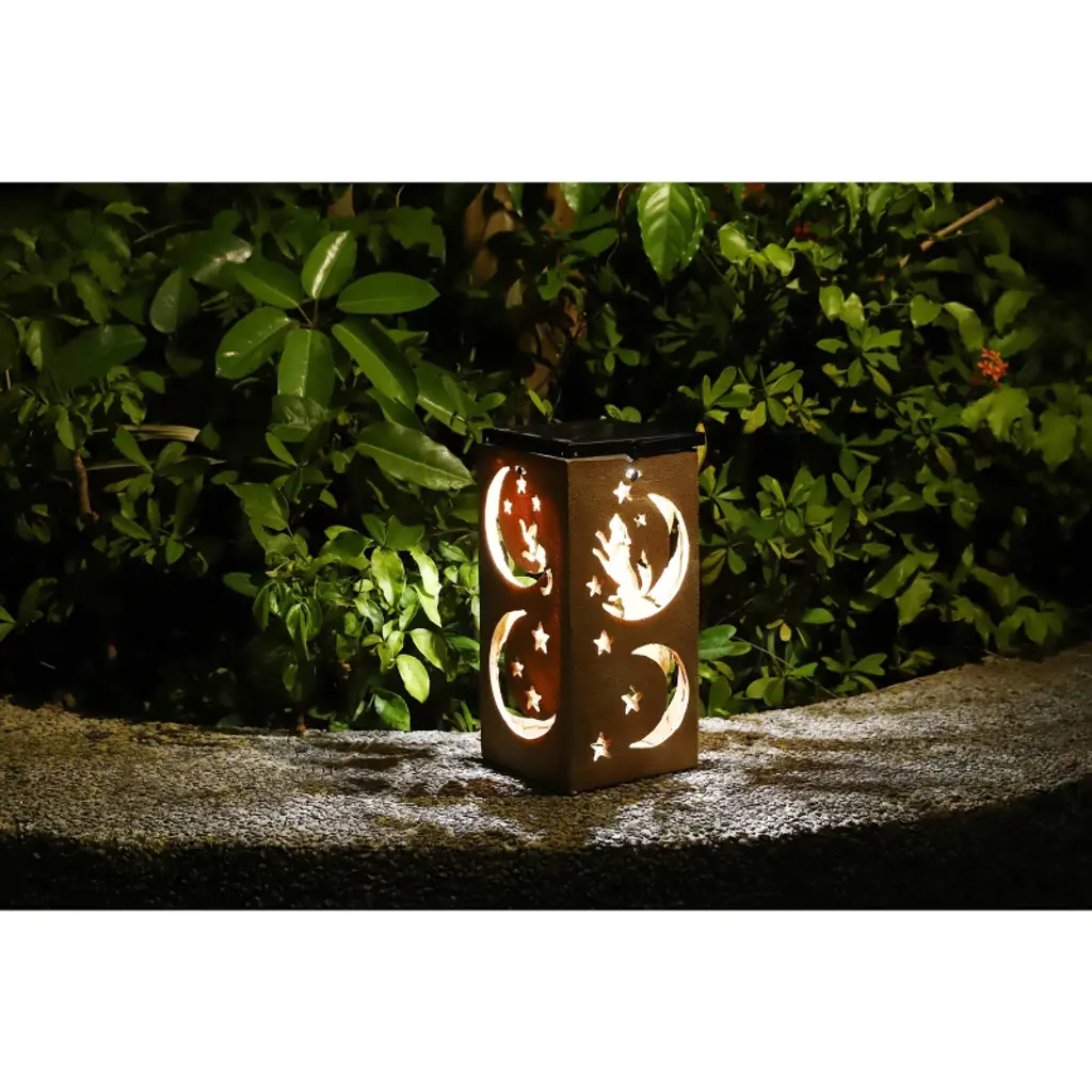 Techko Maid Led Solar 10.8" Portable Moon & Star Cut Out Lantern: Ip65, Dual Lighting Modes
