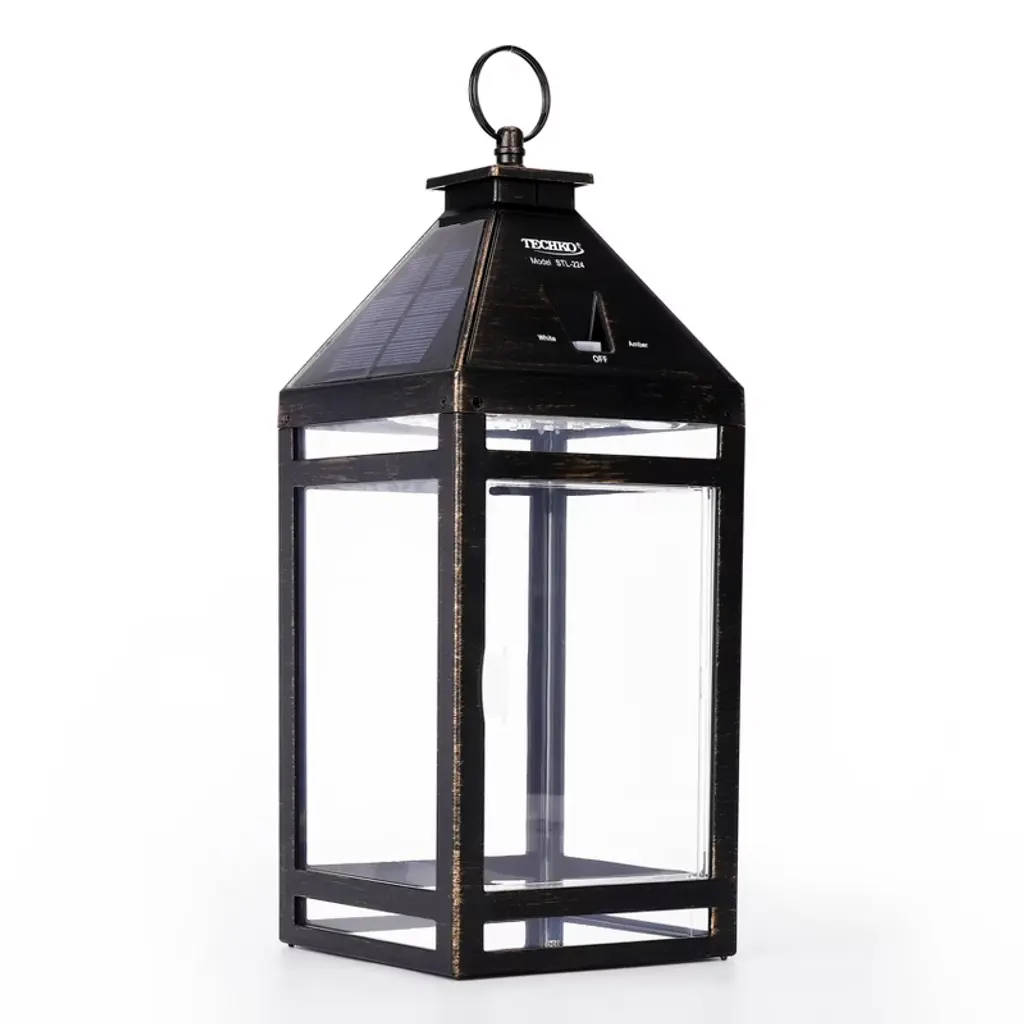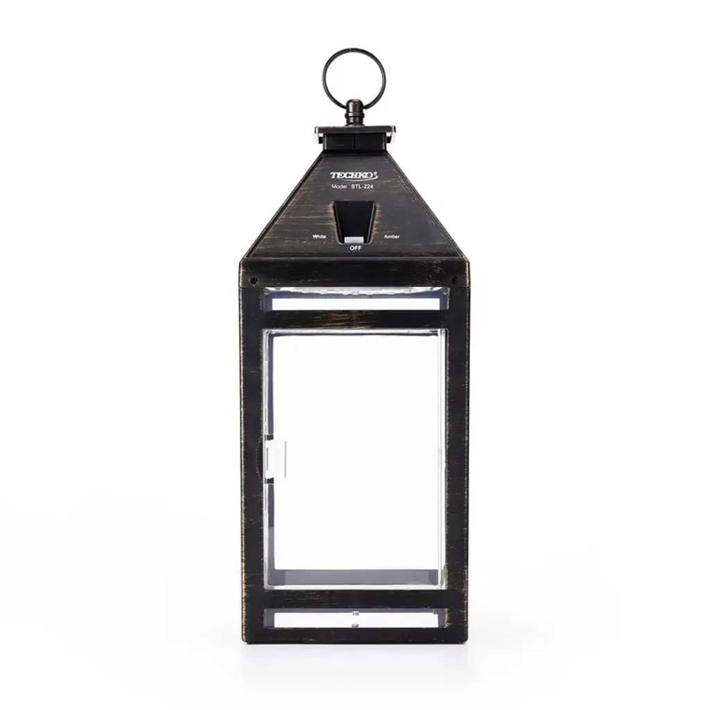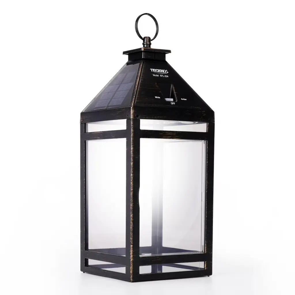Techko Maid Metallic Black Led Solar 12.88" Outdoor Portable Decorative Lantern Clear