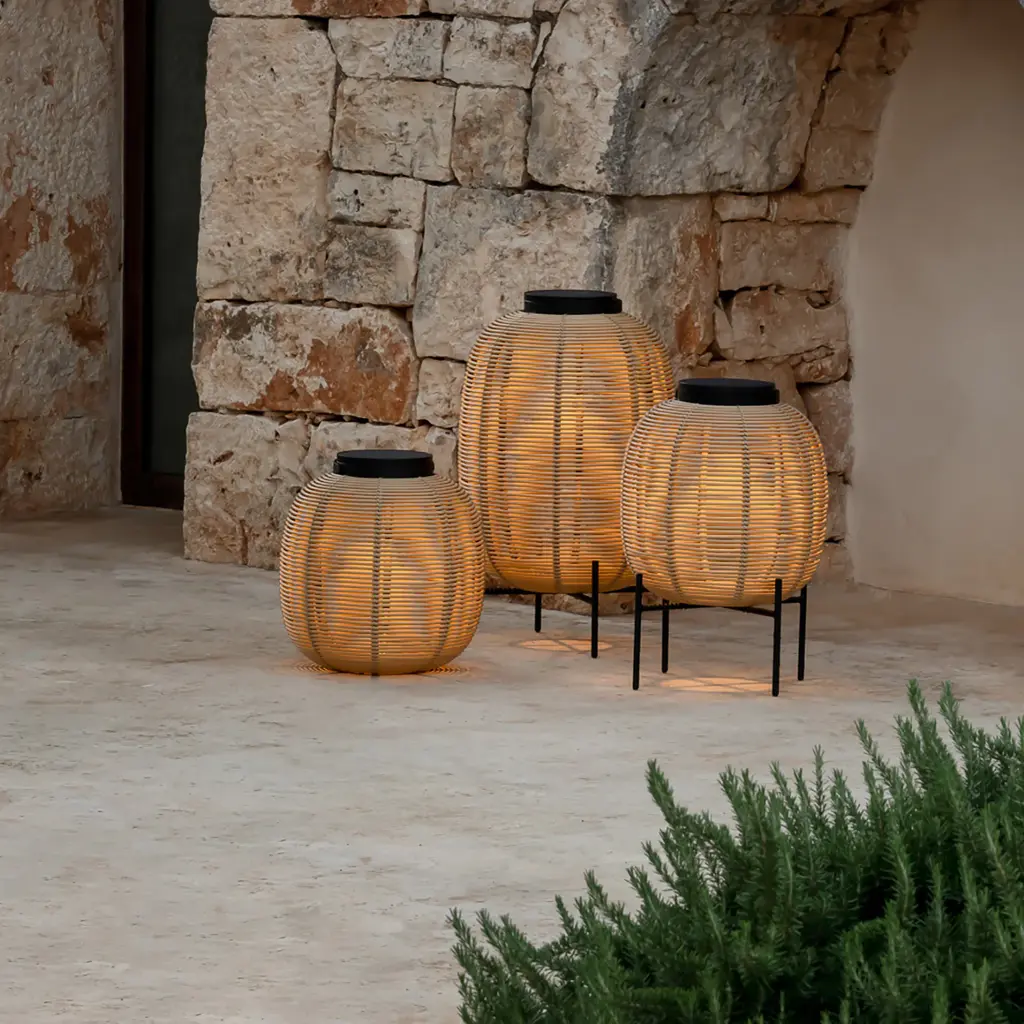 The Tika Lantern with Teak Base from Vincent Sheppard is a solar-powered lantern that will bring an inviting glow to your outdoor area when the sun finally sets. It features a woven basket shell, a teak base for a natural touch, and durable yet lightweight and flexible polyethylene rattan that is weather resistant. Features