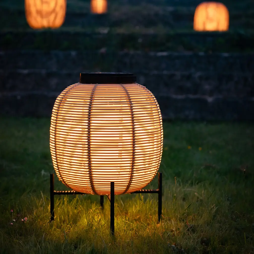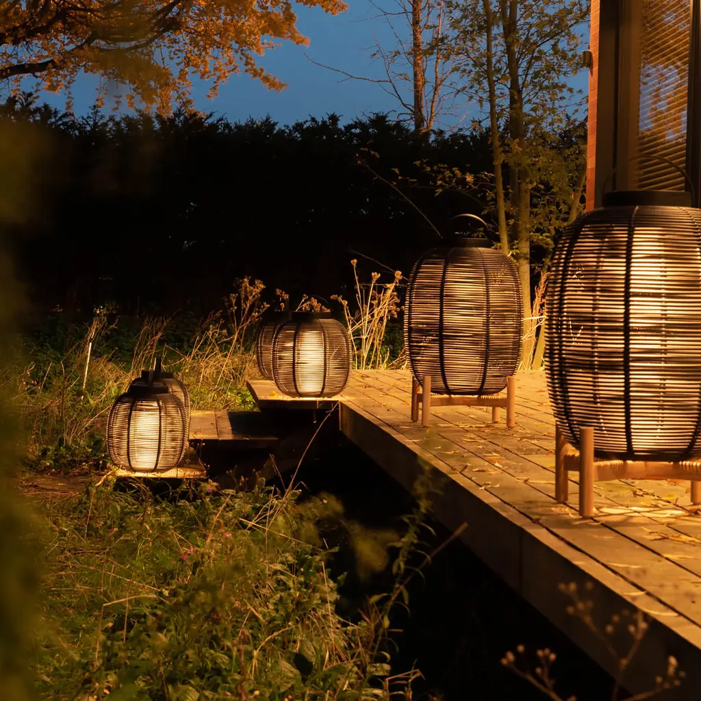 The Tika Lantern with Teak Base from Vincent Sheppard is a solar-powered lantern that will bring an inviting glow to your outdoor area when the sun finally sets. It features a woven basket shell, a teak base for a natural touch, and durable yet lightweight and flexible polyethylene rattan that is weather resistant. Features