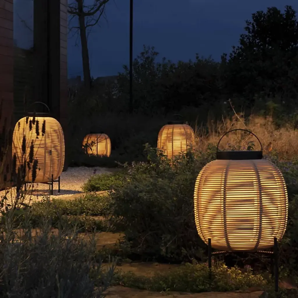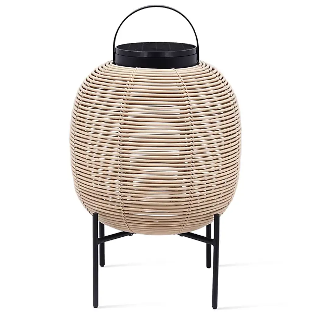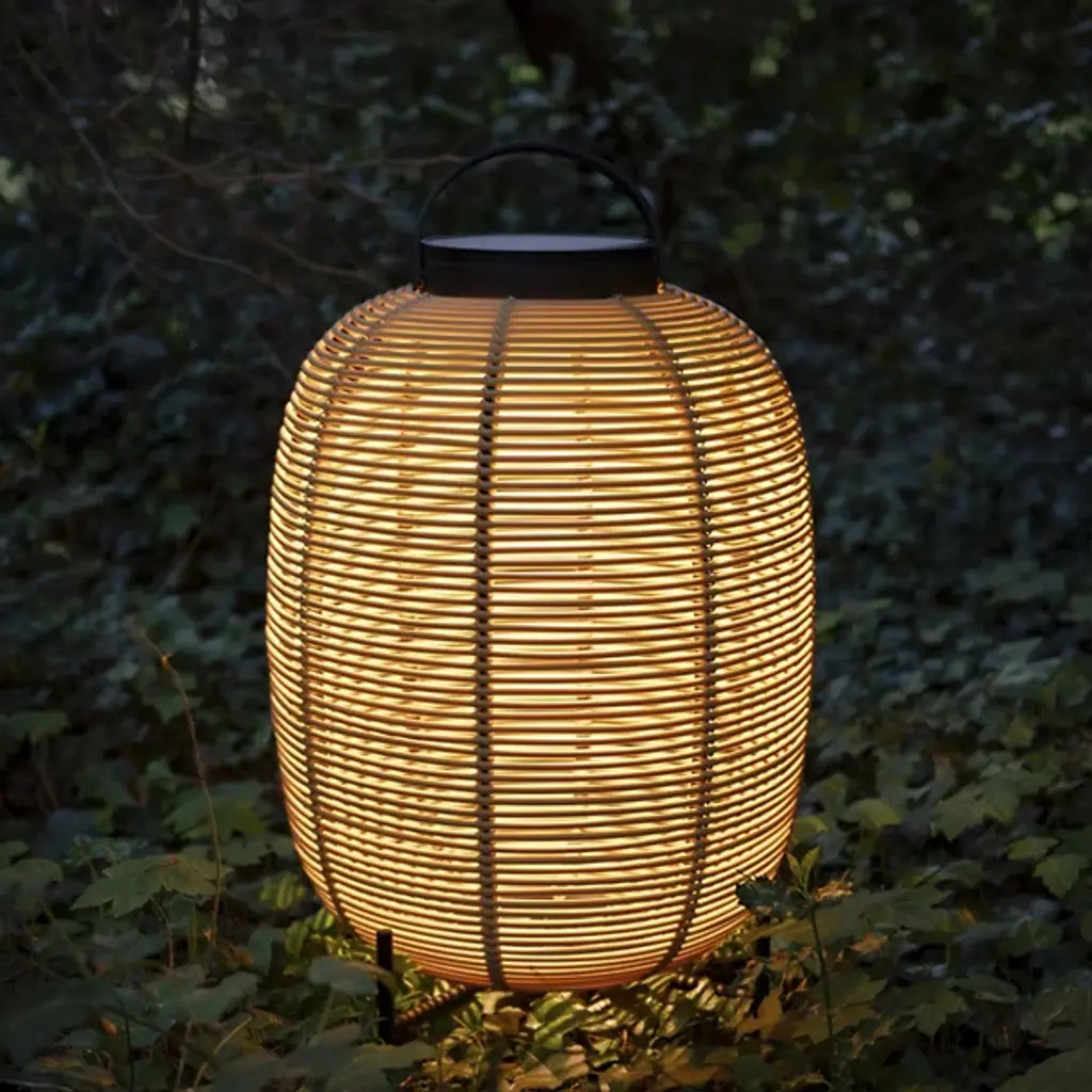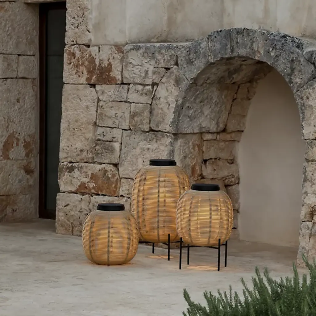 Outdoor lighting with a lovely blend of rustic and industrial elements. The Tika Outdoor LED Lantern with Steel Base by Vincent Sheppard has a steel rod base that coordinates with the portable lantern’s powder coated aluminum frame. Around this frame is woven a tight and modern wicker, which looks natural but is actually made of hard-wearing HDPE (high-density polyethylene). The integrated LED array is powered by a solar panel, and it can be set to turn on automatically in the evening via a light sensor.