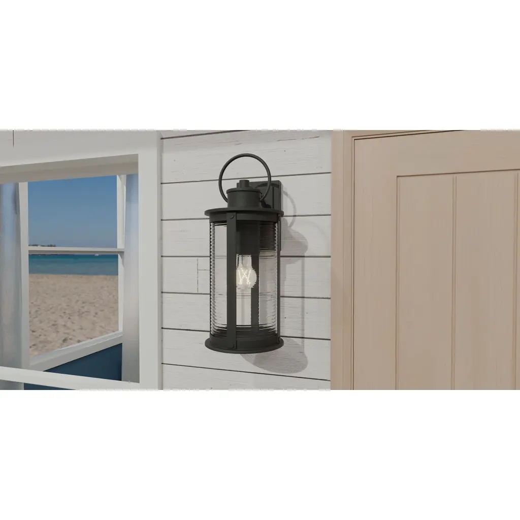 Tilmore outdoor lanterns are the perfect companion to coastal-inspired exteriors. The sturdy matte black frame is accentuated by clear ribbed glass for a classic look, designed to withstand the elements in style. Available as a hanging lantern, post lantern, and various sizes of wall lantern, Tilmore is an easy way to illuminate a front porch or landscape.