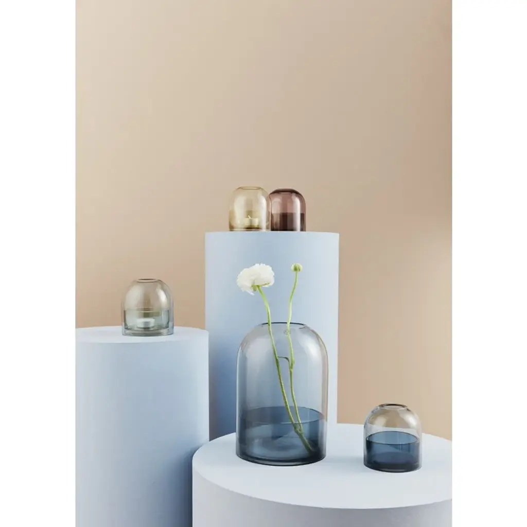 The Tota lantern from the Danish brand AYTM adds beauty and warmth to home decor with its attractive colors and gently shaped glass surface. Tota is made of two nested glass bowls in different colors, creating an interesting and unique shade for the candlelight. The lantern is available in several color combinations and two sizes: the smaller size is perfect for tealights, and the bigger is designed to fit a pillar candle. Instead of candles, you can also place a small plant or decorative item inside the lantern.