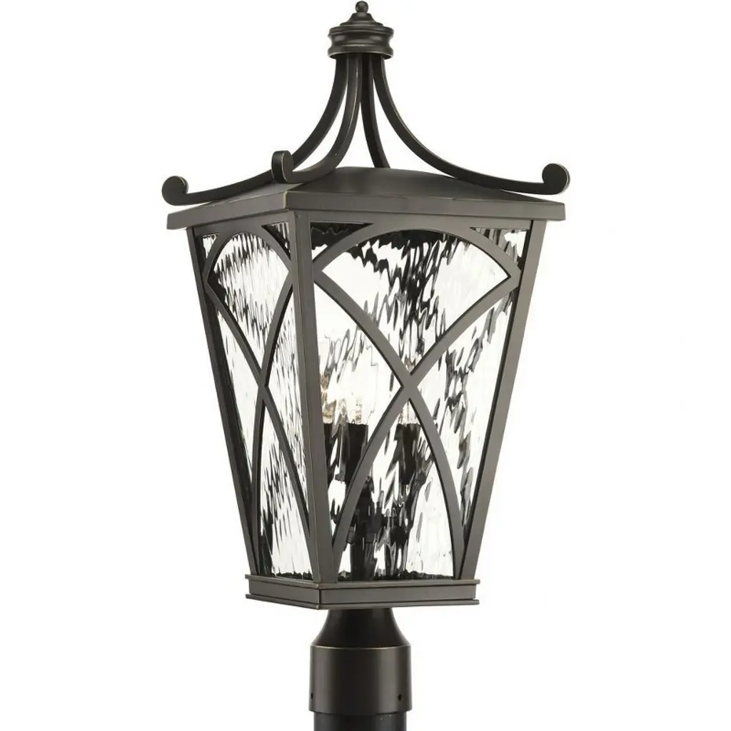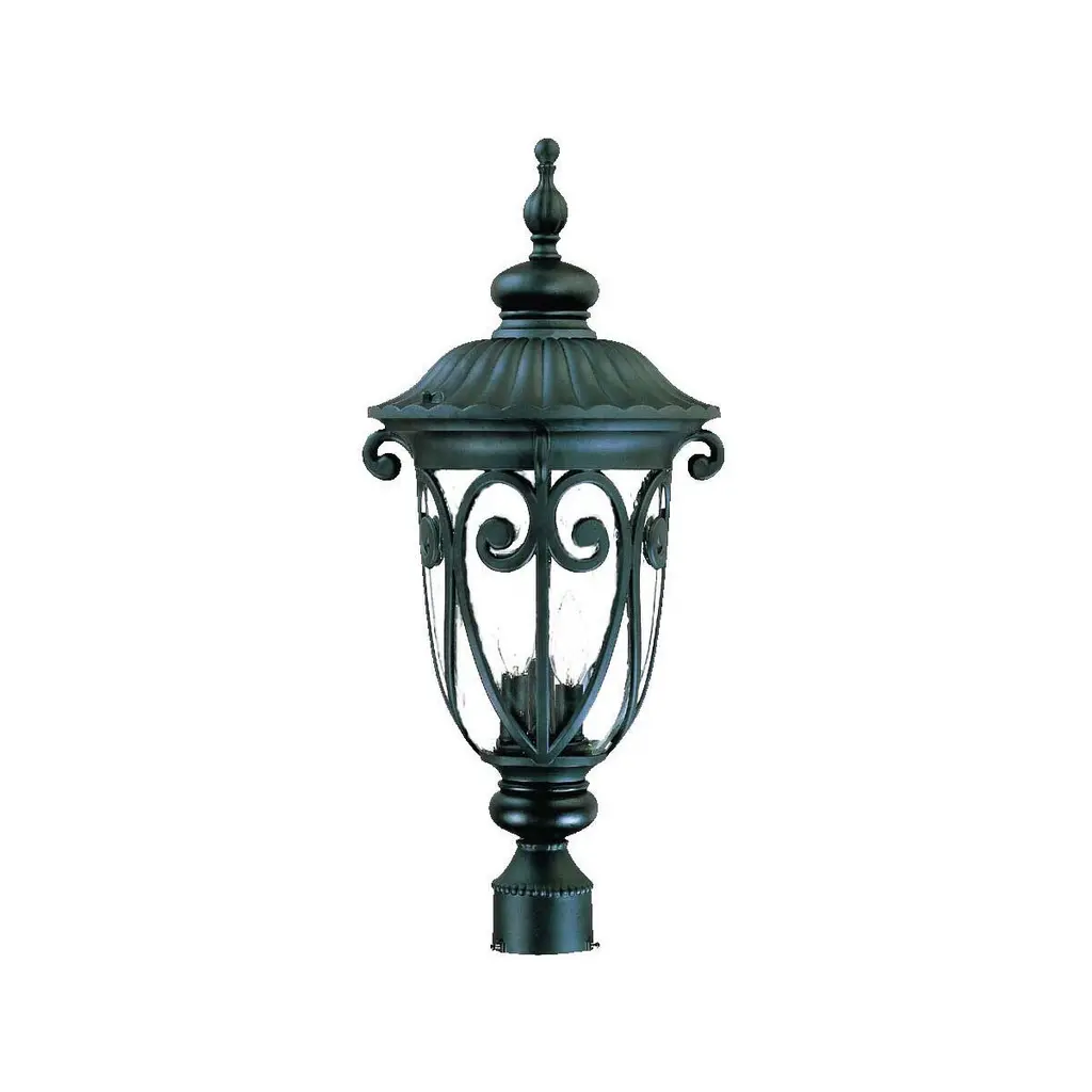 With its heavy textures, dark tones and fine attention to detail, this 4 light mounted outdoor post from the Tournai(TM) collection stands out from other outdoor fixtures. Handmade from cast aluminum, its distinctive Textured Black finish and Clear Seedy Glass panels give this piece a unique aged look.