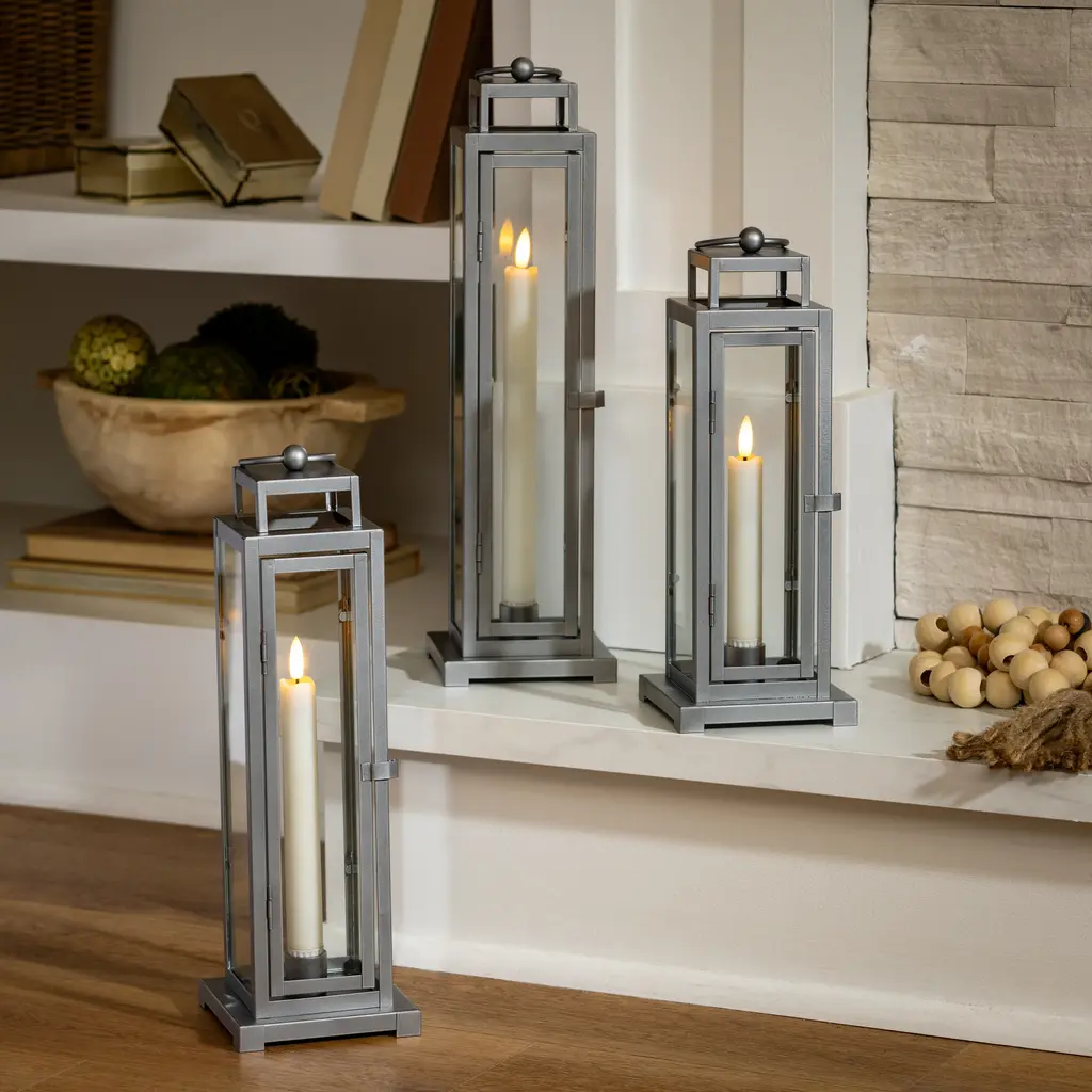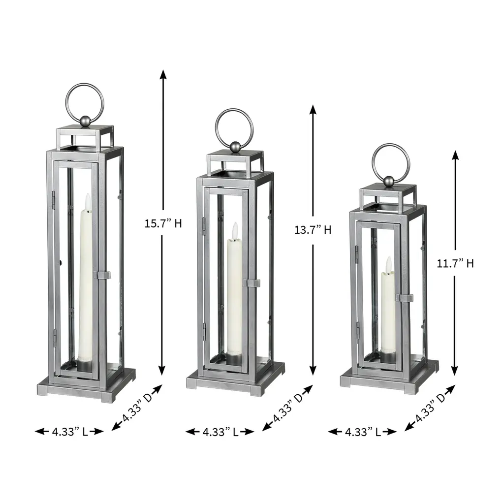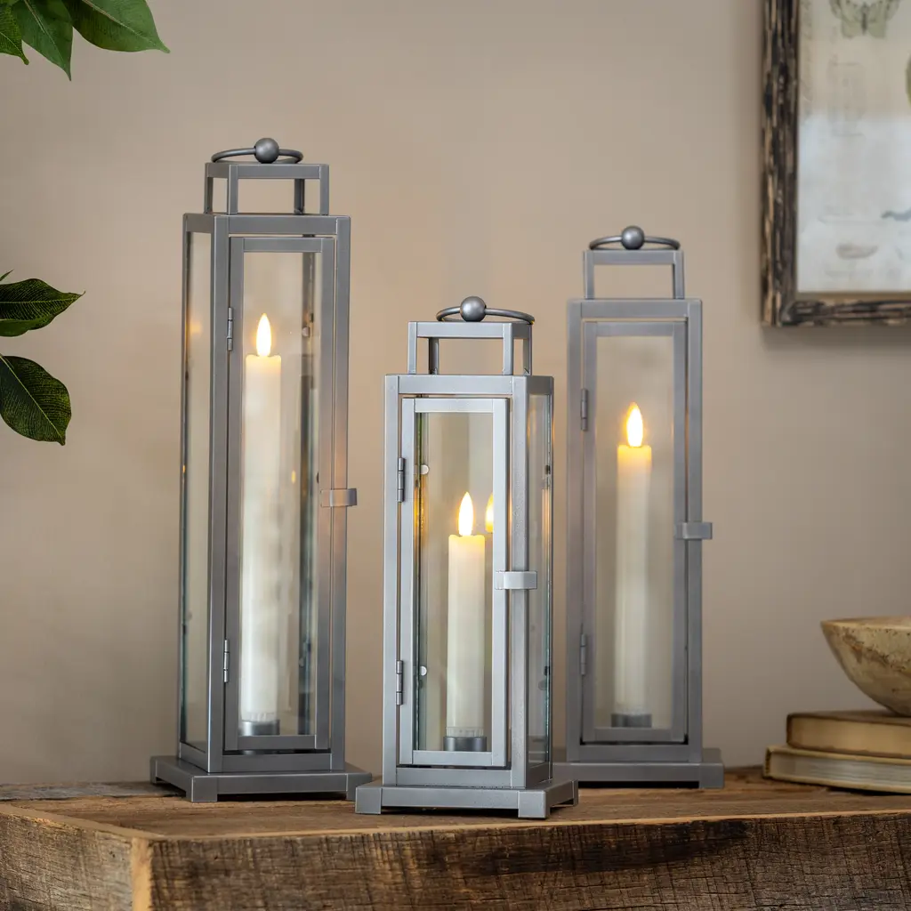 Tower Lantern Led Tapered Set Of 3 With Gray Finish