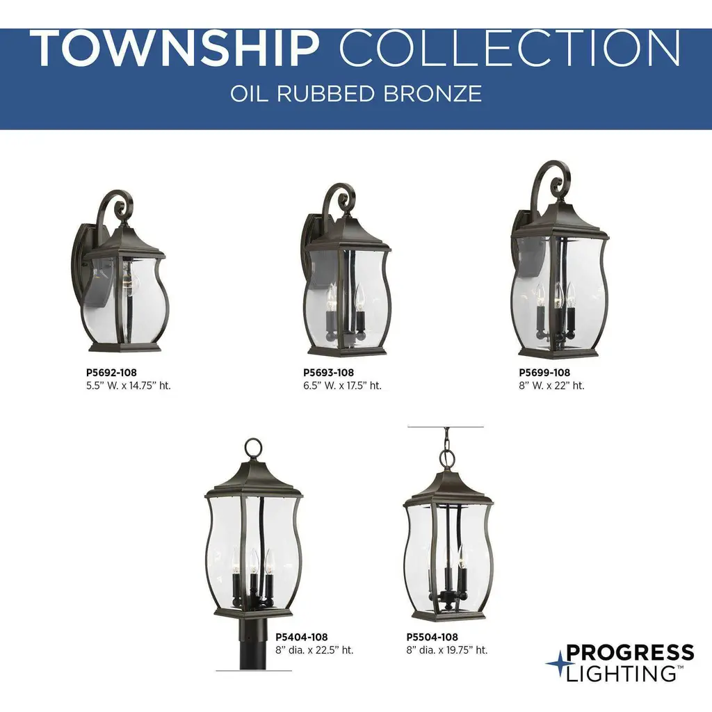 Enjoy the simple elegance of traditional styling in this one-light wall lantern. Township's clear beveled glass and Oil Rubbed Bronze finish contains notes of New England-inspired style for this new outdoor lantern collection.