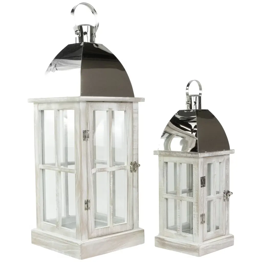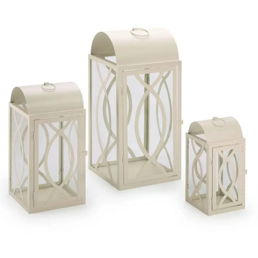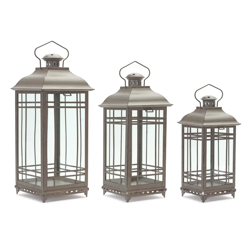 Welcome your guests with this beautiful set of decorative lanterns. Its traditional design paired with the rustic weathered finish is the perfect combination to make a stunning piece. The lanterns are a great addition to both every day and seasonal home decor. The sturdy metal composition is sure to last for seasons to come. Just add real wax or LED candles to complete the look. It also makes a great canvas for DIY faux floral arrangements.