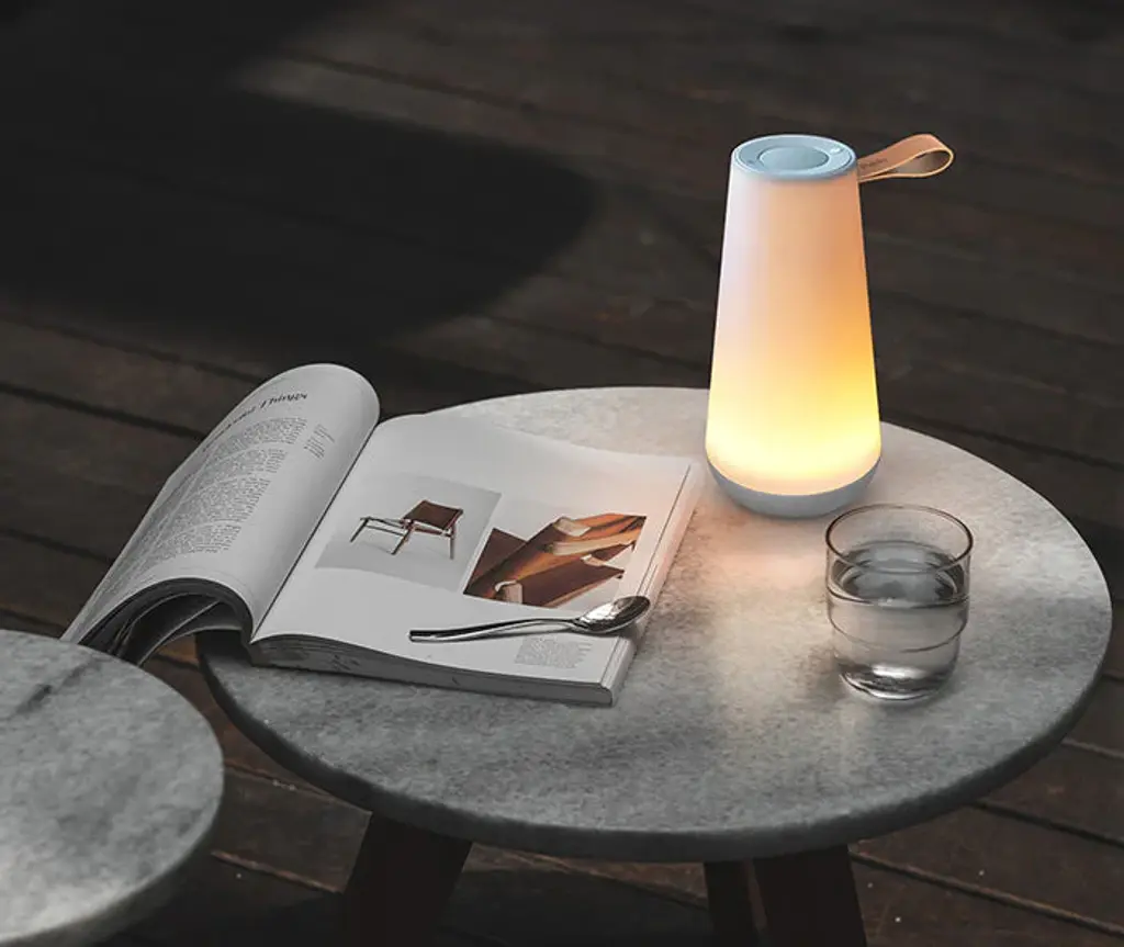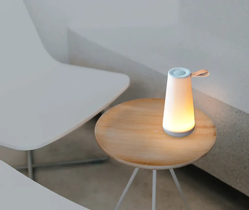Uma Mini, the newest addition to the Uma family, and now more portable than ever to travel with you anywhere you go. The revolutionary Uma Mini Lantern takes all its cues from its big sister Uma, fusing state-of-the-art warm dim LED technology with 360 degree high fidelity surround sound, while boasting a party mode feature that allows for pairing up to 24 units simultaneously via Bluetooth to create the perfect ambiance. Uma Mini also features touch sensitive volume control with 2 soft light level settings to set the perfect mood. Invoking the primal symbol of the lantern and the warmth of a campfire, Uma Mini is the perfect centerpiece for social gatherings at home, restaurant lounges, and any outdoor setting.