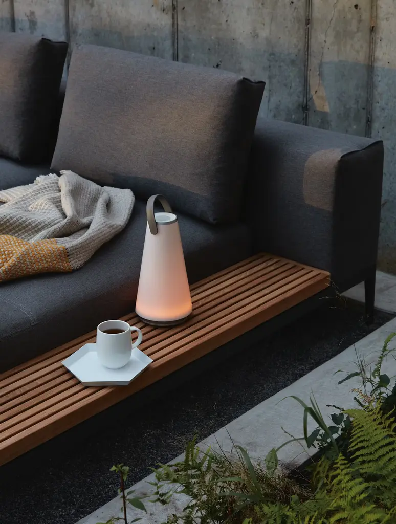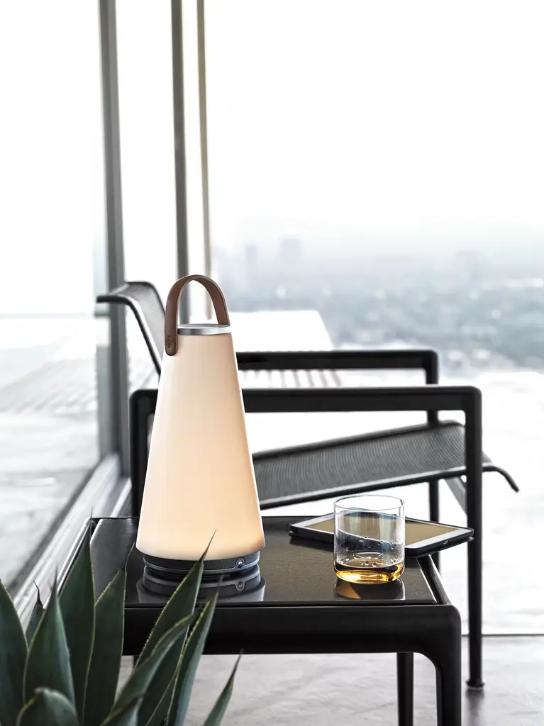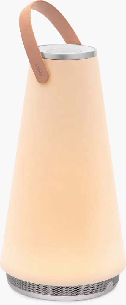 Perfect for entertaining day or night, indoors or out, the UMA Sound Lantern makes a great companion at parties and gatherings. Along with a full-range light-control dial, it offers 360-degree sound with touch-sensitive volume control. Bluetooth connectivity makes for effortless music streaming. Comes with a premium leather carrying handle, protective travel bag, rechargeable lithium battery, and USB charging cable. Bulb (included): 4.5W/190 Lumens/2000-2700K LED with life span up to 50,000 hours. UL Damp Listed. Made in China.