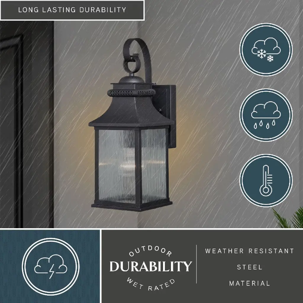 The Cambridge collection is the perfect blend of traditional and upscale class. Its updated lantern lines are highlighted in oil rubbed bronze and wrinkle glass panes. Ideal for your porch, entryway, garage, or any other area of your home. Dusk to dawn photo cell automatically turns fixture on in the dark and off in the light for Live safety and security, saving energy during daylight hours.