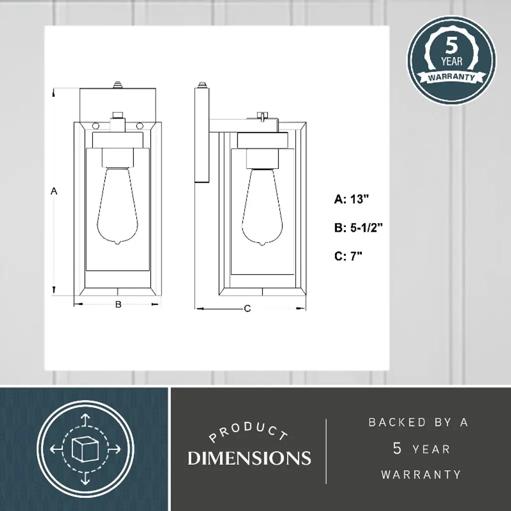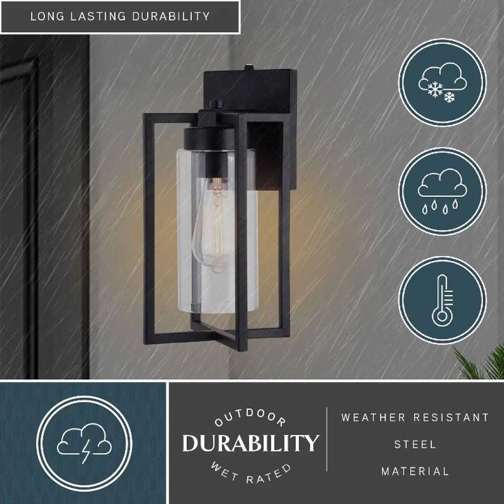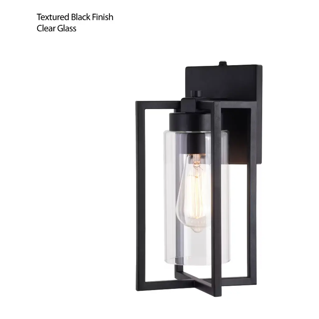 Light and airy sums up this beauty called Kilbourne. Two textured black frames float around a transparent glass cylinder, giving this collection its exceptional modern flair. No frills get in the way with this clean open look. Modern never looked so good in this collection. Ideal for your porch, entryway, garage, or any other area of your home.
