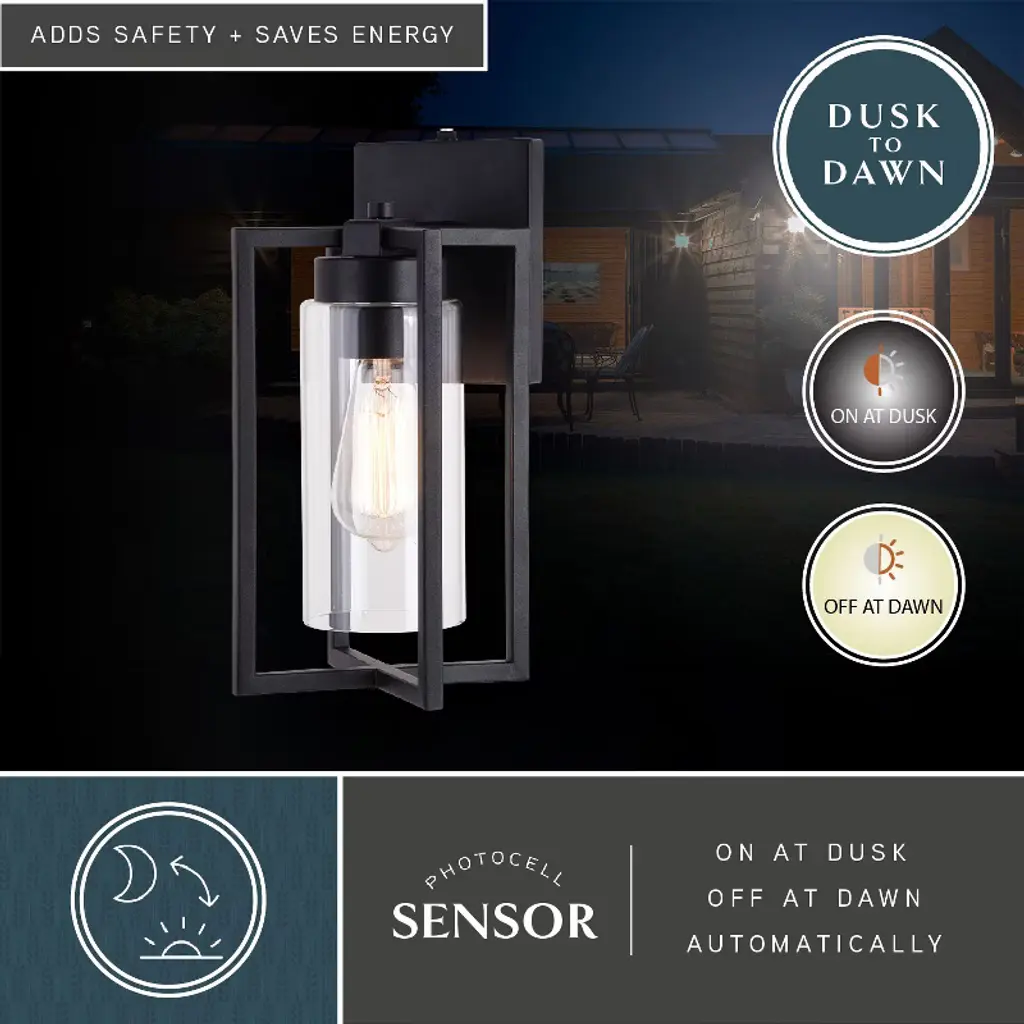 Vaxcel Kilbourne 1 Light Black Dusk To Dawn Outdoor Wall Lantern Clear Glass