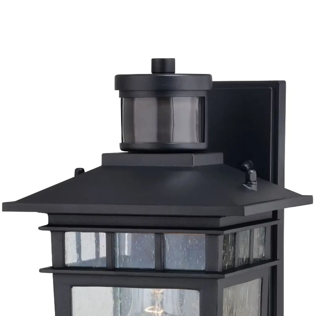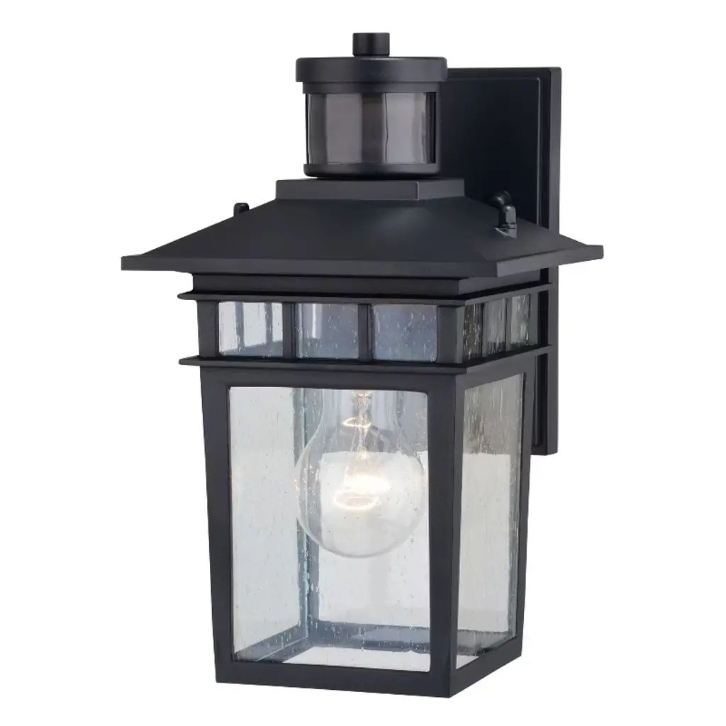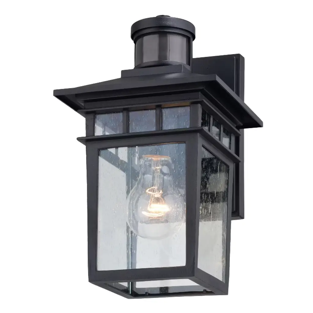 Vaxcel Ridge 6.5-in. W 1 Light Aluminum Black Motion Sensor Dusk To Dawn Outdoor Wall Lantern Clear Glass
