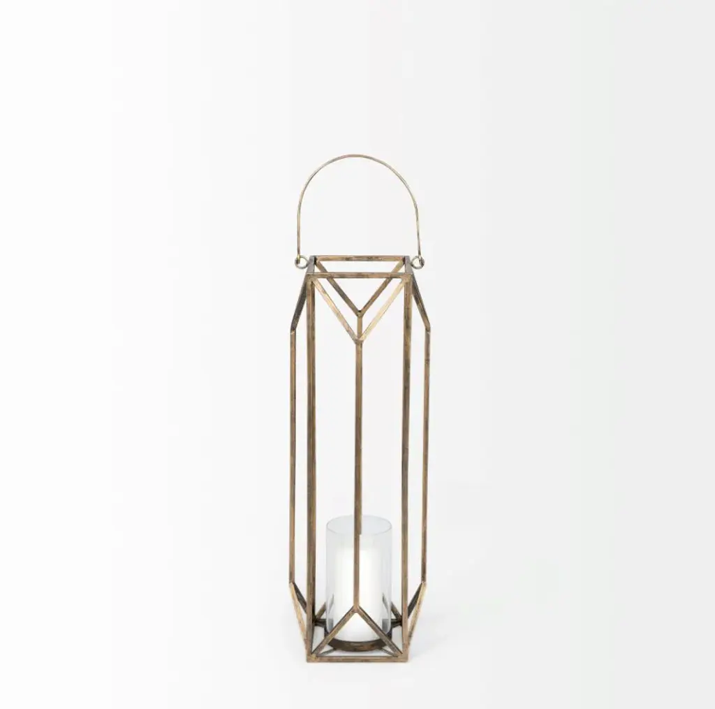 Holiday sparkle abounds in our candle lantern featuring a reflective mirrored base and twinkling stars hand cut into the glass. Handcrafted in India from metal with a charming vintage-gold finish, it comes in assorted sizes. Light it up with a pillar candle, LED candle, or string lights. Or use it for a festive floral arrangement to decorate anywhere around your home, from your entryway to a mantel or hearth in the living room.