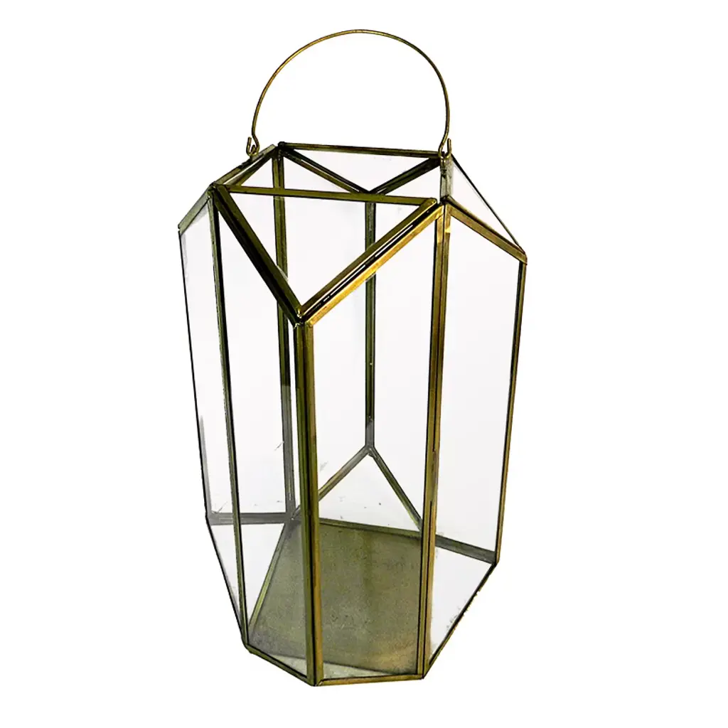 Vintage Gold And Hand Cut Glass Star Candle Lantern
