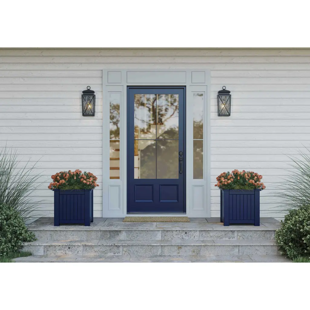 Finished in classic black, water glass and crown molding trim gives Wakeford a nostalgic look with modern sophistication. A cross brace design contrasts against the textured glass panes to offer a vintage look that fits well with both transitional and new traditional exteriors.