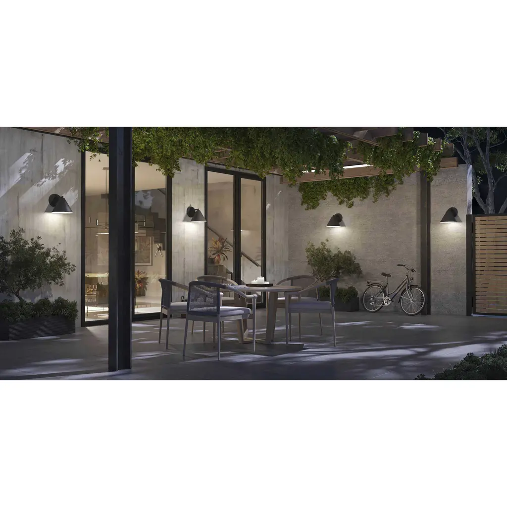 The Ward Collection conveys simple, clean styling in a big way with a streamlined conical metal shade finished in textured black. Generous downward illumination is cast from this Dark Sky friendly design. The wall lantern offers a functional style that complements porches, patios and other outdoor areas in urban industrial and transitional settings.It is cULus wet for use where water may be present, with a one-year warranty to guarantee your complete satisfaction. Progress Lighting products are designed for exceptional quality, reliability, and functionality.
