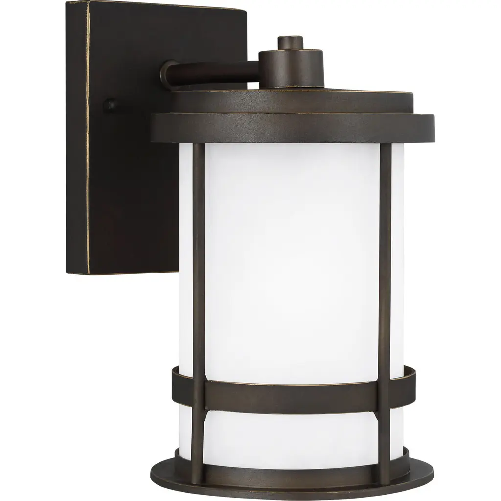 With a nod to retro-industrial chic, the Wilburn outdoor fixtures wraps a white frosted glass shade in a fun metal cage to create a casual and easygoing look. Offered in Antique Bronze and Black finishes with Etched White glass, the assortment includes a one-light outdoor pendant, small medium, large, and extra-large one-light outdoor wall lanterns, a one-light out door post lantern and a one-light outdoor ceiling flush mount. Both incandescent lamping and ENERGY STAR-qualified LED lamping are available for most of the fixtures, and some can easily convert to LED by purchasing LED replacement lamps sold separately.