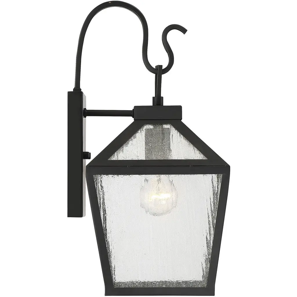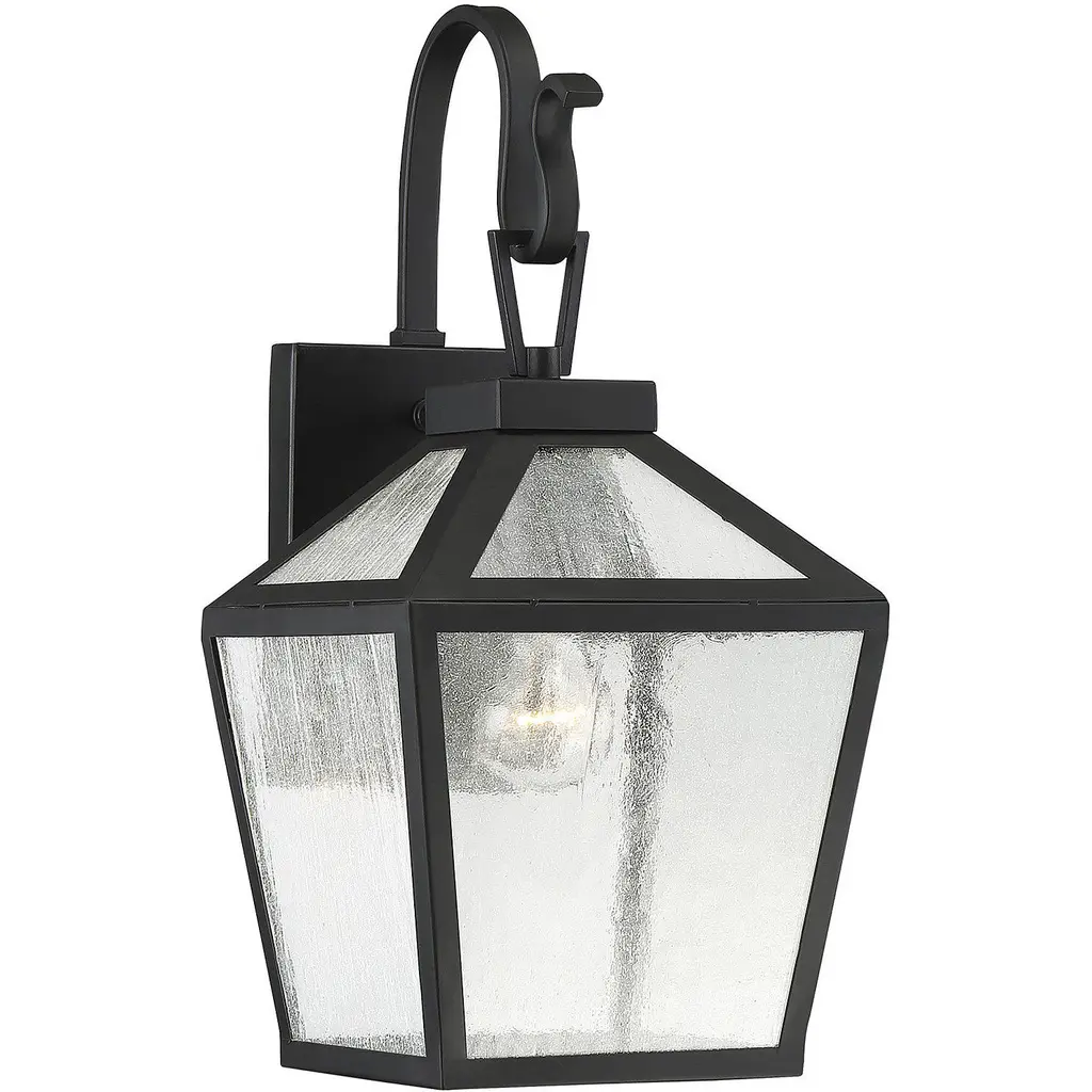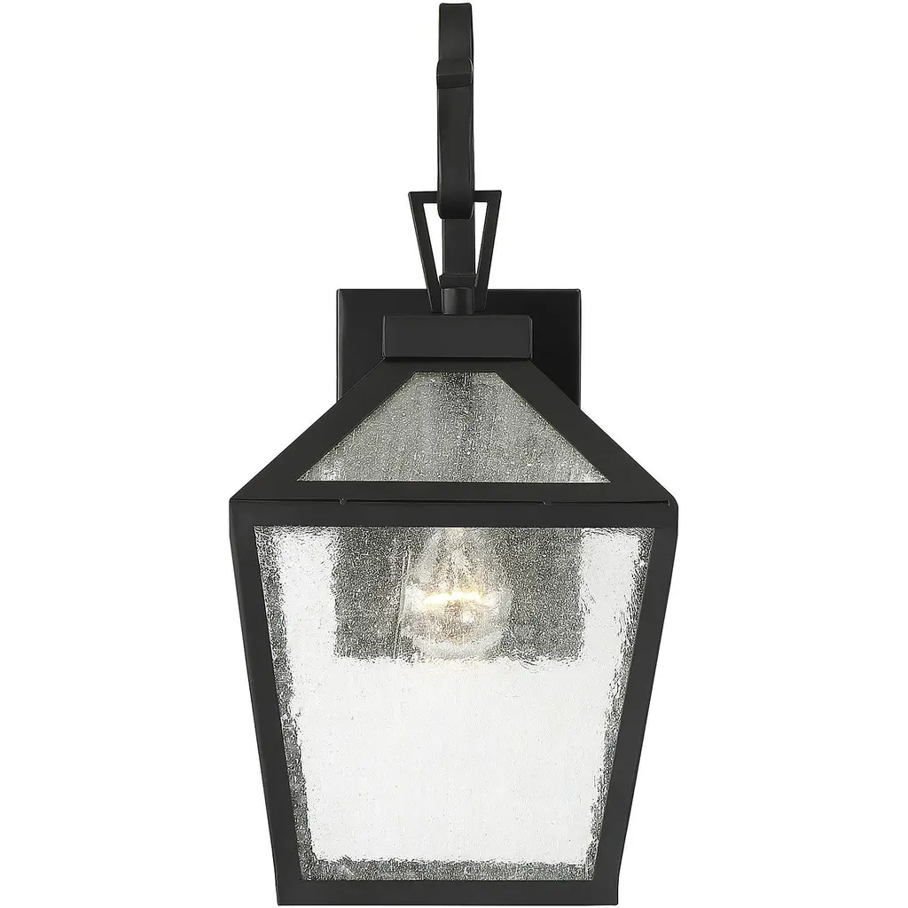 The traditional charm of vintage lanterns blends beautifully with streamlined, contemporary appeal in this Savoy House Woodstock 1-light outdoor wall lantern. Everyone who enters your home will feel welcomed and appreciate its classic style. Finished in matte black with clear seeded glass panes that add wonderful textural interest. The 16" high by 8" wide size makes it easy to place multiples of these lanterns on the walls of your porch, patio, sunroom, garage or pergola. Uses 1 standard size bulb of up to 60 watts. Wet area rated.