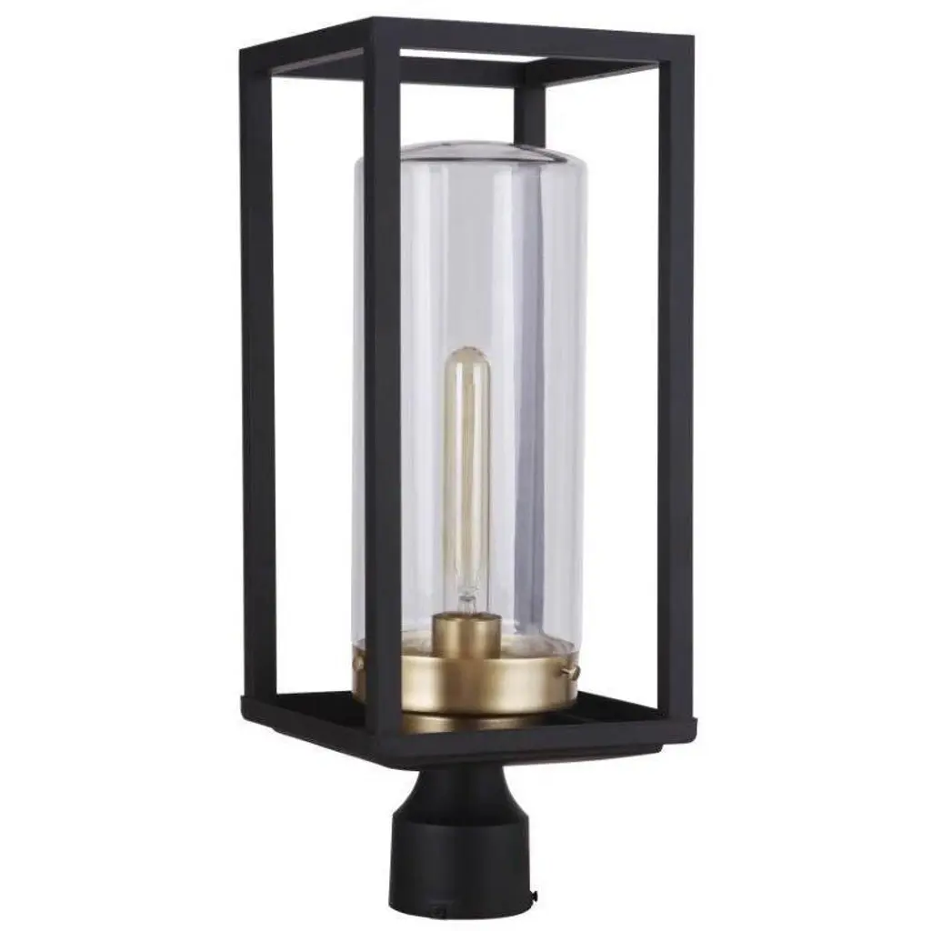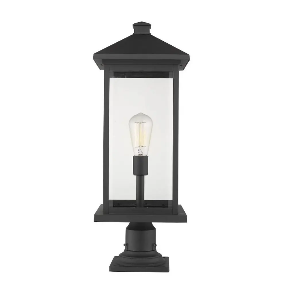 Illuminate your outdoor entertainment space with this modern outdoor pier mounted fixture from the Dunbroch collection. Featuring a rectangular lantern with an airy, open silhouette, this outdoor patio fixture is perfect for casting light on decks and verandas. With a dark black aluminum frame and a single light surrounded within a clear glass cylindrical globe, this pier mounted fixture lends a sophisticated, yet understated contemporary vibe. Room Recommendation: Outdoor Living/Deck/Patio Dimmable: Yes Shade Included: Yes