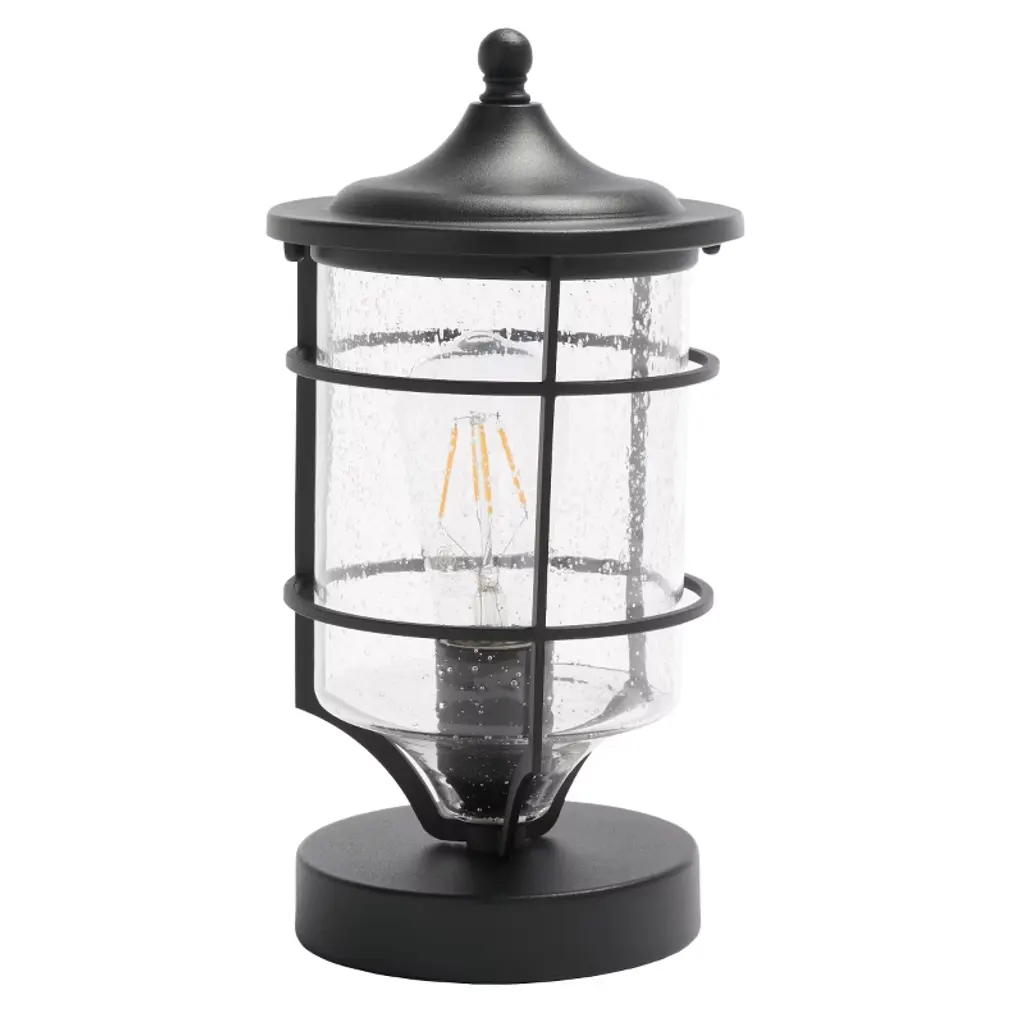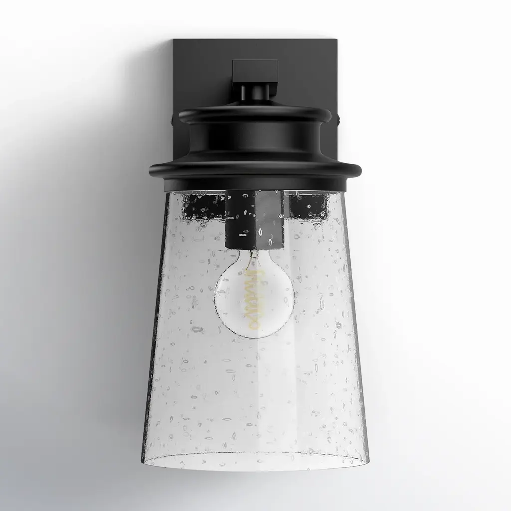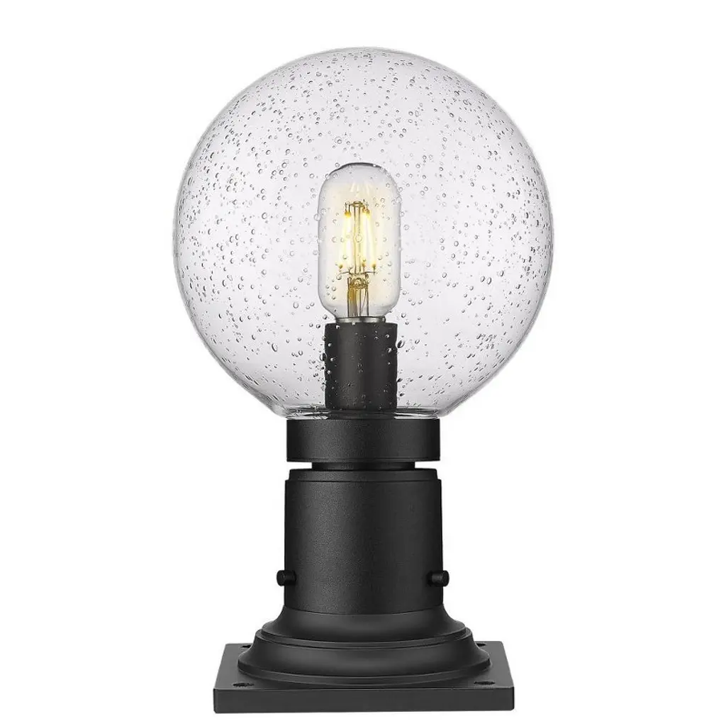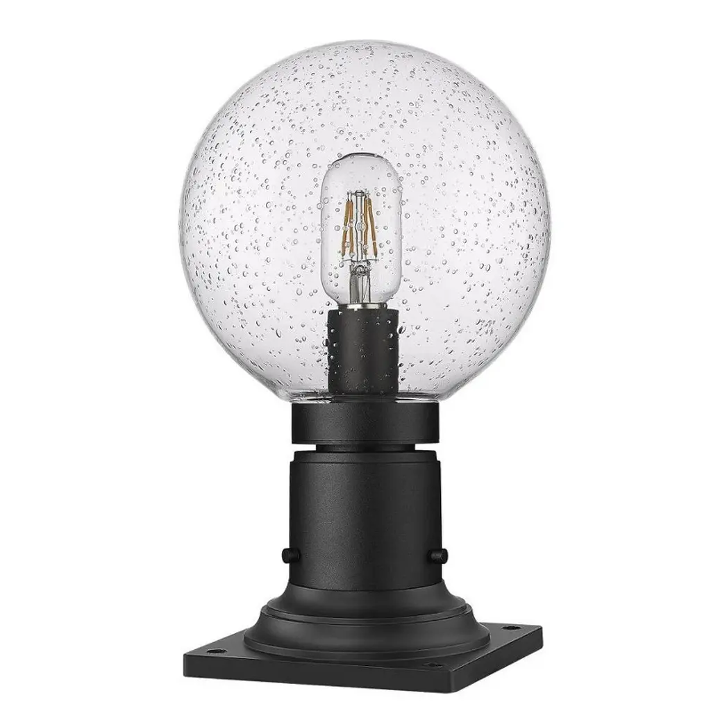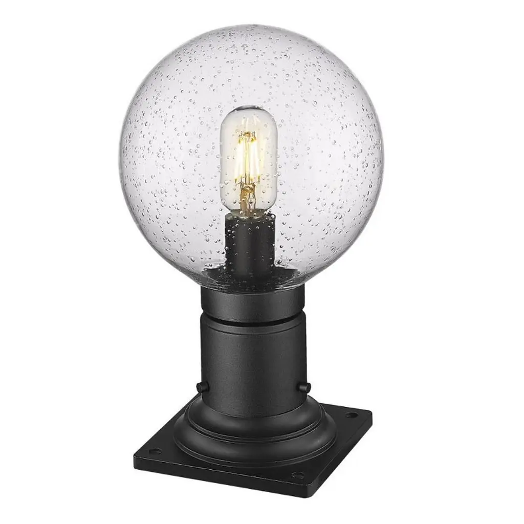 Incorporate a stylish Mid-Century Modern village-inspired look in exterior lighting to round out a tasteful aesthetic. This one-light outdoor pier mounted fixture from the Laurent collection is fashioned of versatile black finish aluminum in a frame with a charming and lightly dressed up base. A delicate clear seedy glass globe creates ultimate elegance and artistry.