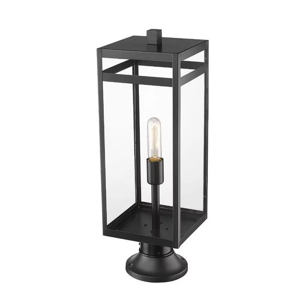 With a crisp, clean silhouette, this rectangular outdoor wall lantern with glass panels is impeccably crafted in aluminum and sports a Black finish that will complement any design scheme. The Nuri Collection is a perfect choice for todays exteriors. Room Recommendation: Outdoor Living/Deck/Patio Dimmable: Yes Shade Included: Yes Material: Glass, Finish Color: Black, Width: 7.5", Height: 23.5", Length: 7.5", Lamping Type: Incandescent, Number Of Bulbs: 1, Wattage: 100 Watts, Dimmable: Yes, Moisture Rating: Wet Rated