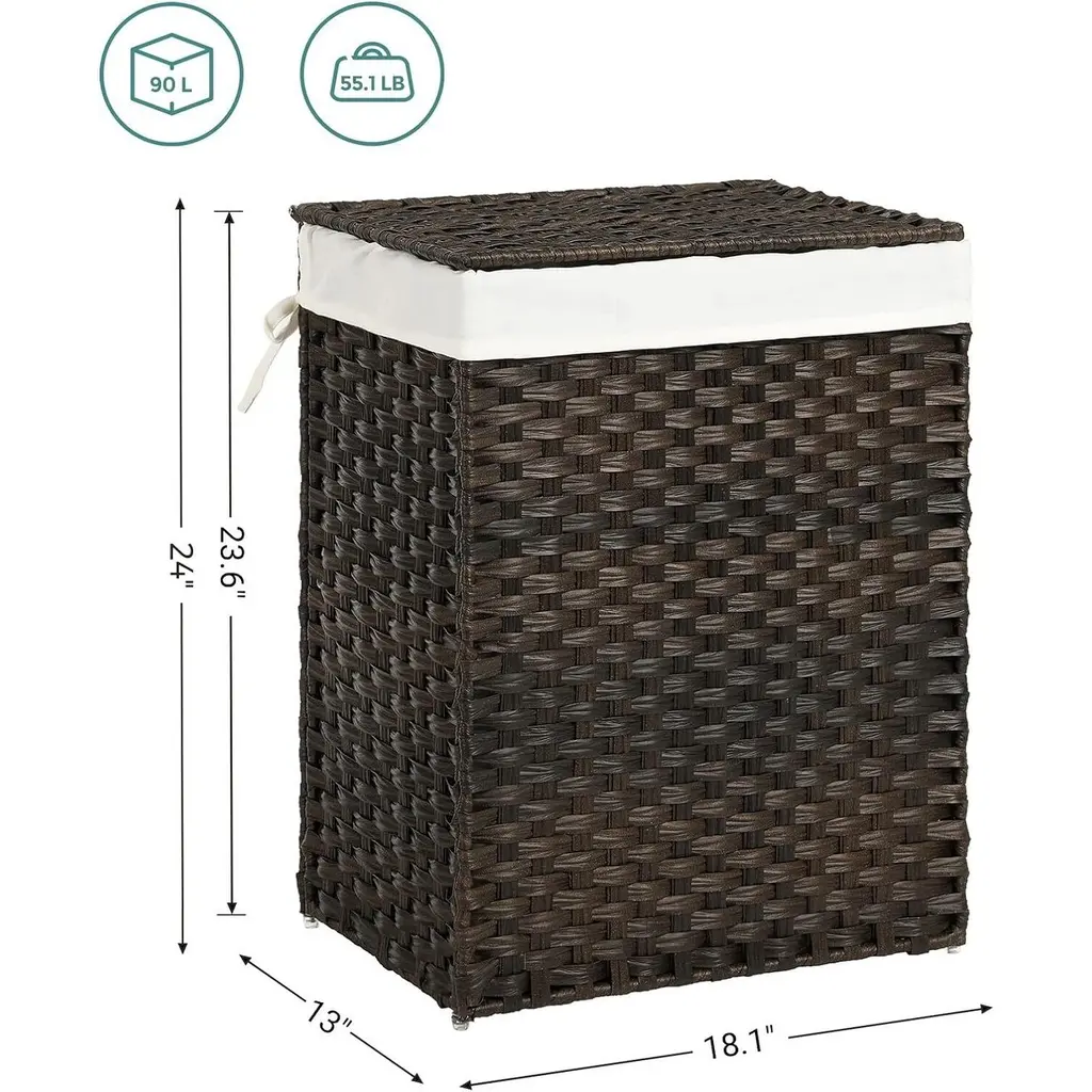 23.8 Gallon (90 L) Synthetic Rattan Clothes With Lid Laundry Hamper - Chestnut Brown