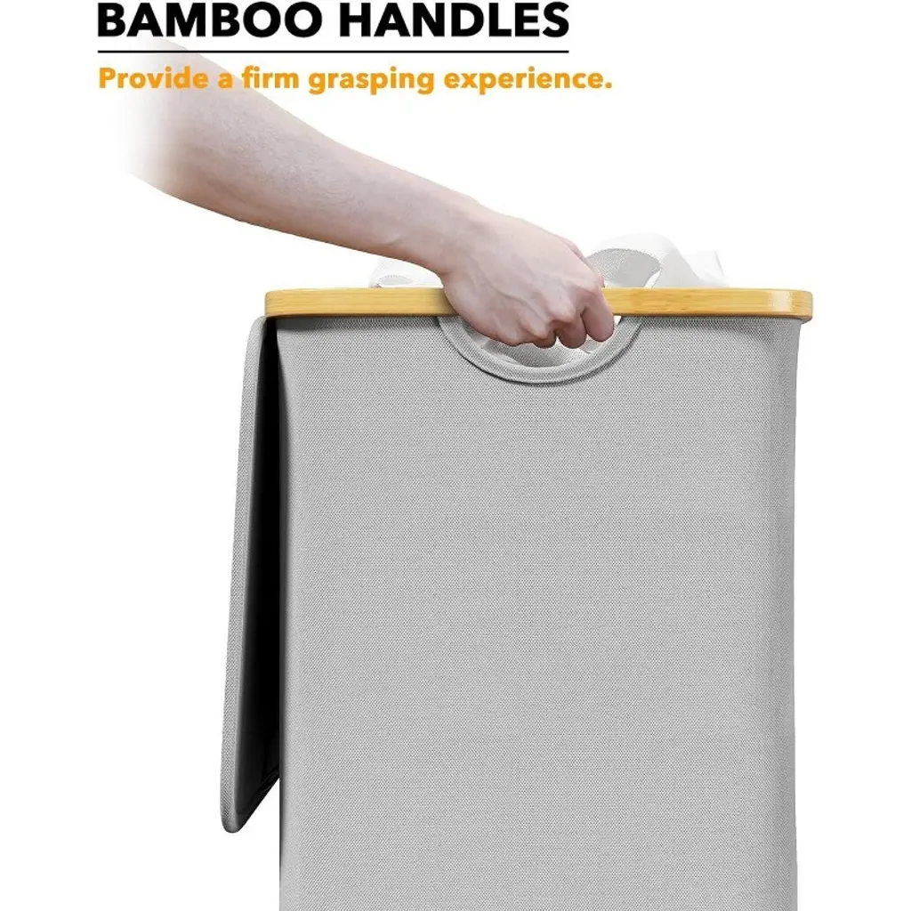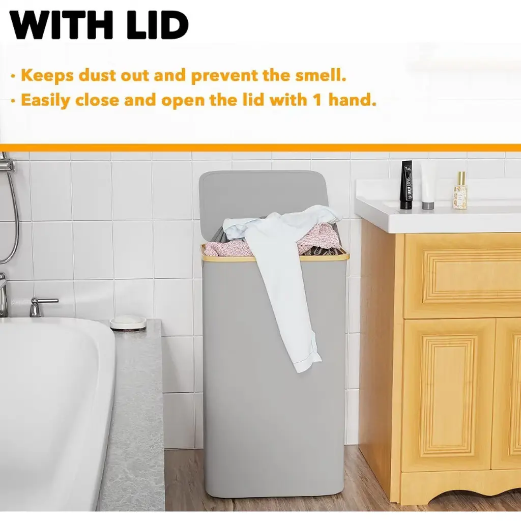 29 Gallon Laundry Hamper With Lid,features Bamboo Handle,light Gray