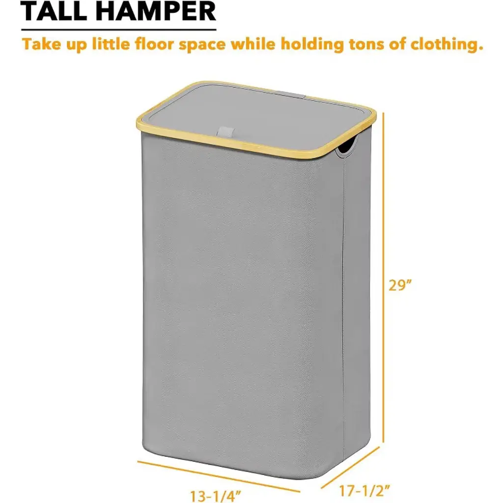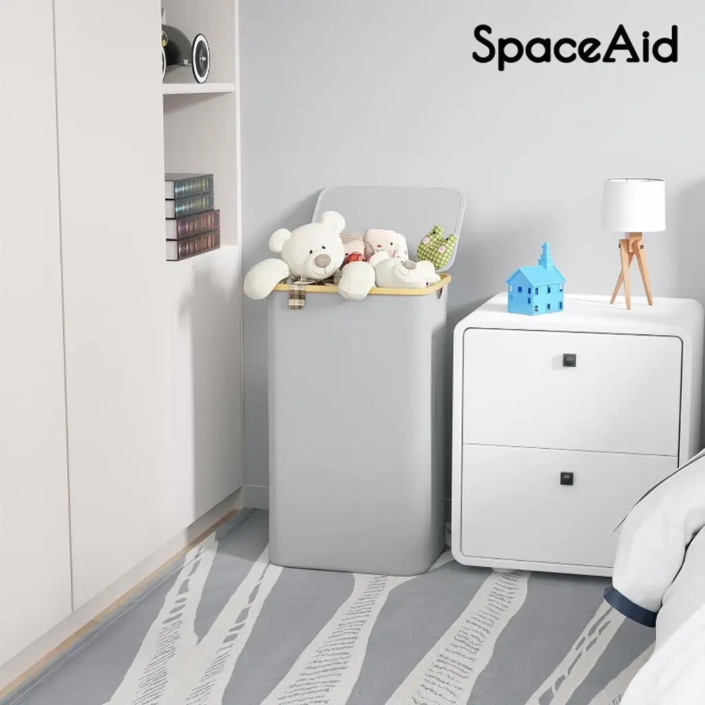 SpaceAid's 110L Large Tall Laundry Hamper with Lid combines convenience and elegance for your home. Crafted from durable materials and featuring high-quality bamboo handles, it offers both strength and natural beauty. This hamper is designed to blend practicality with aesthetics, perfect for use in bedrooms, bathrooms, dorms, or laundry rooms.With a spacious 110-liter capacity, this laundry hamper accommodates large loads, handling up to two weeks' worth of laundry efficiently. The lid helps conceal clothing, keeping your space neat and preventing items from spilling out.Additionally, its collapsible design allows for easy storage when not in use, saving space and enabling effortless transport. Whether organizing laundry, transporting clothes, or enhancing home organization, SpaceAid's laundry hamper is an ideal choice, adding convenience and style to your daily routine.