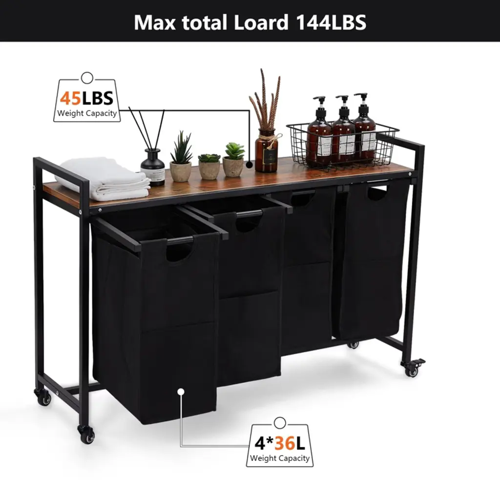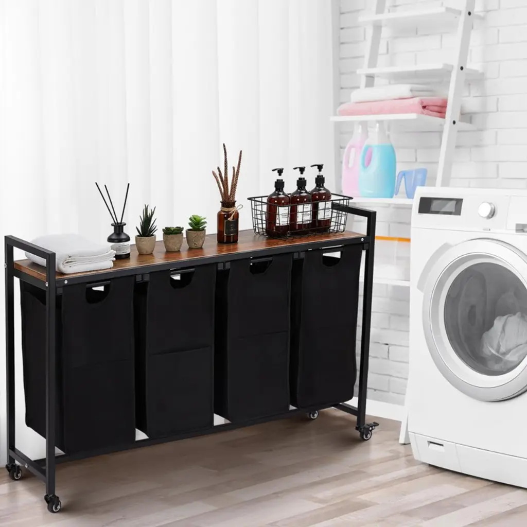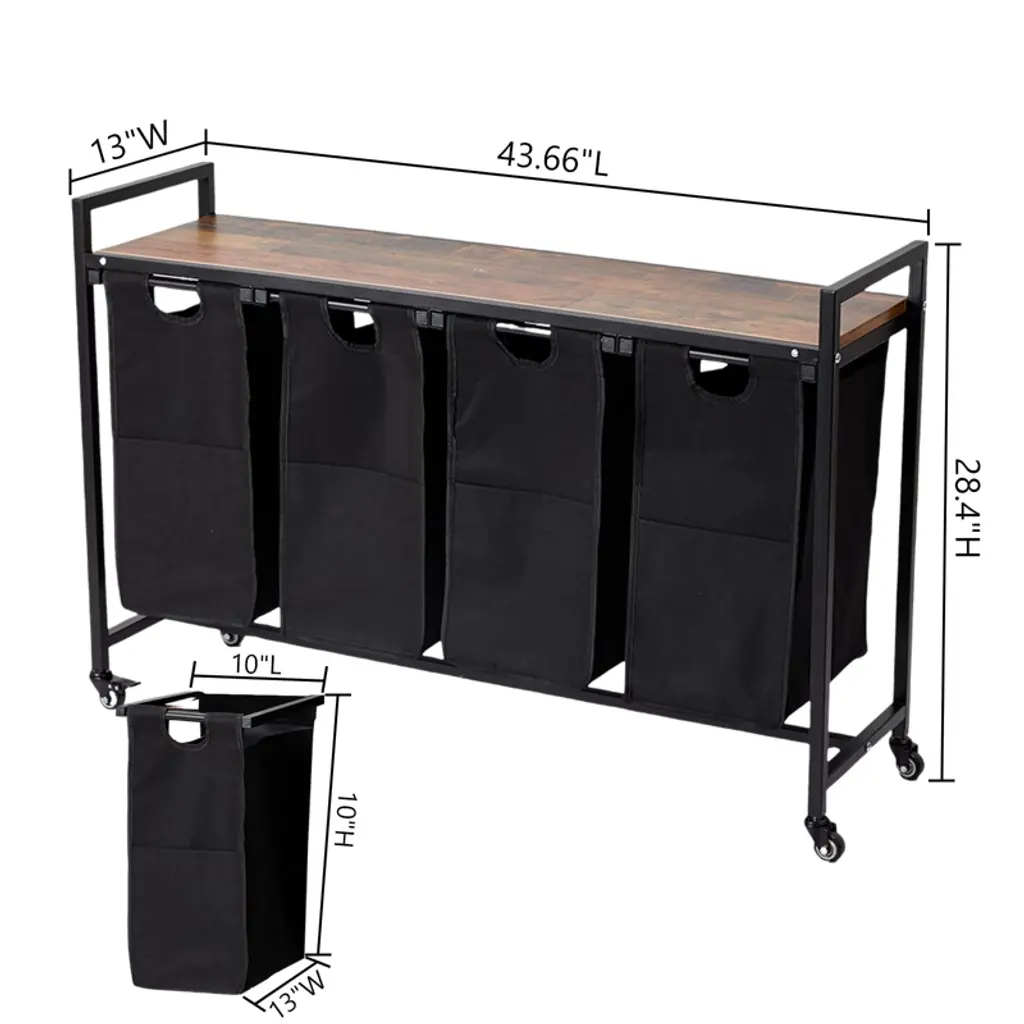 4 Pcs Laundry Hamper, Laundry Basket, Laundry Sorter With 3 Pull-out And Removable Bags