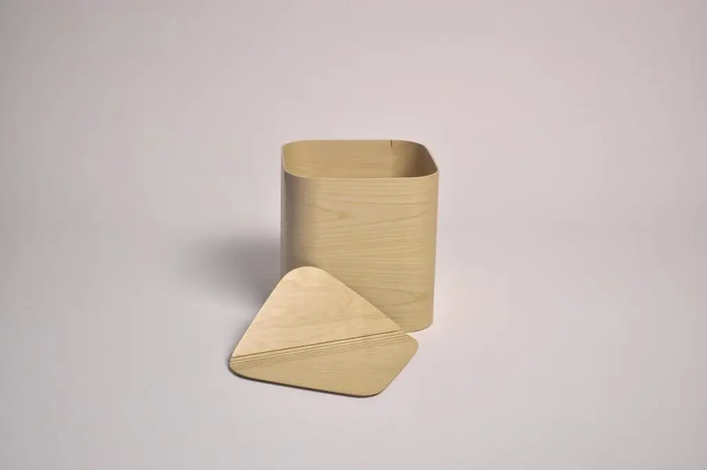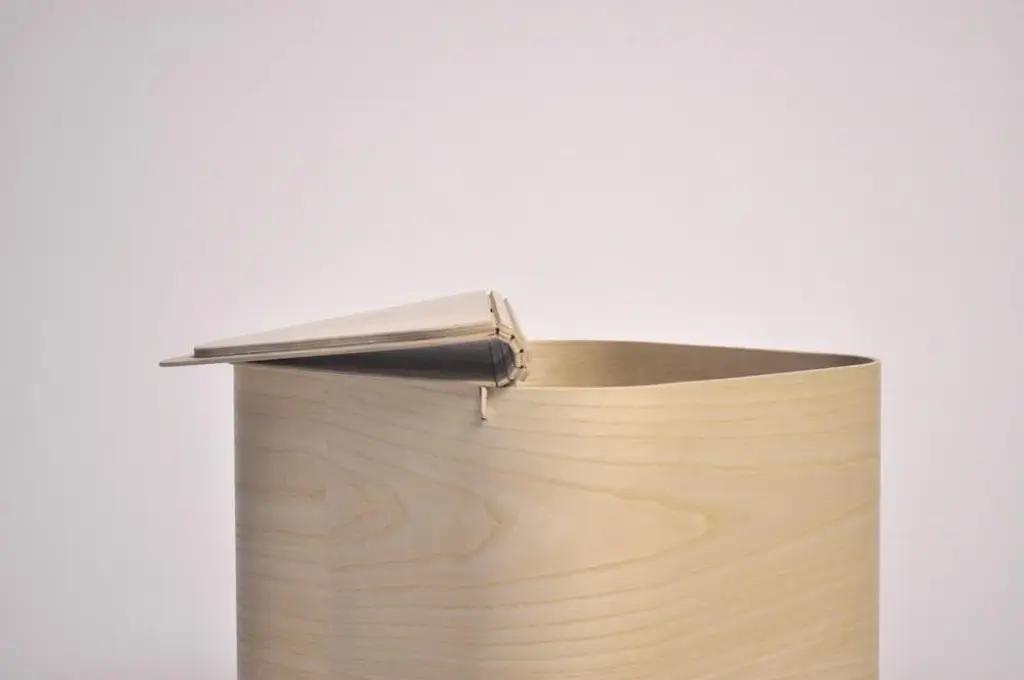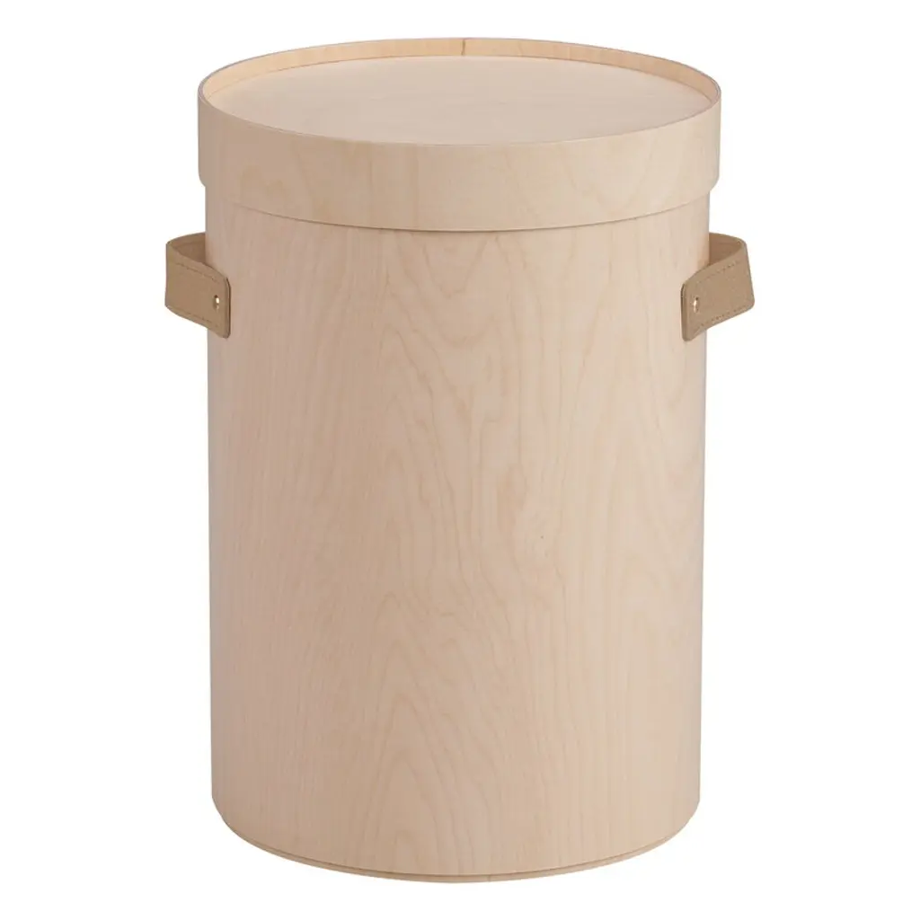 Square wooden laundry basket with rounded corners, with a particular folding lid. Made of curved ash, natural water-based varnished. The design? Italians do it better. from refined drums to modern furniture. The Milanese company Villa srl has been producing wooden shells and hoops for acoustic drums and percussion since the early 1960s. Since the 1980s VILLAHOMECOLLECTION has designed a collection of furniture and home accessories that takes inspiration from the exploration of the acoustics of percussion instruments, fusing contemporary design and a minimal Nordic aesthetic. Signed by Maker