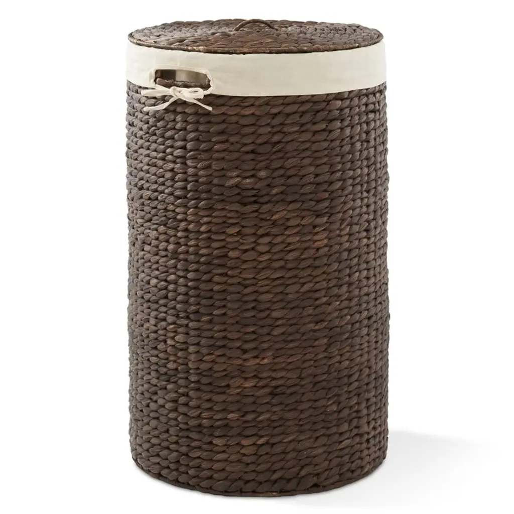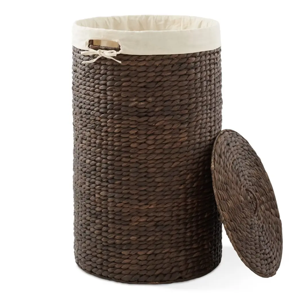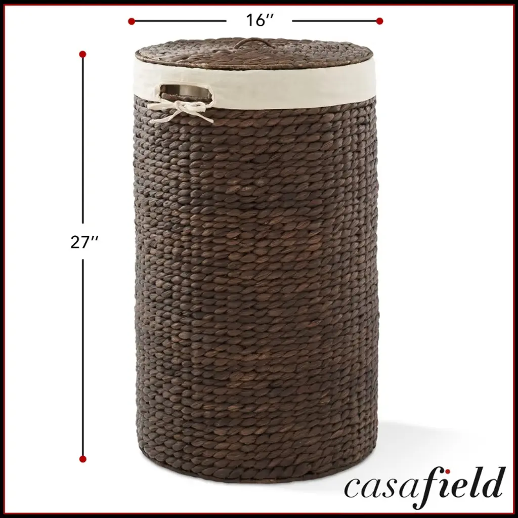 Casafield Round Laundry Hamper With Lid And Removable Liner Bag - Espresso, Woven Water Hyacinth Laundry Basket For Clothes