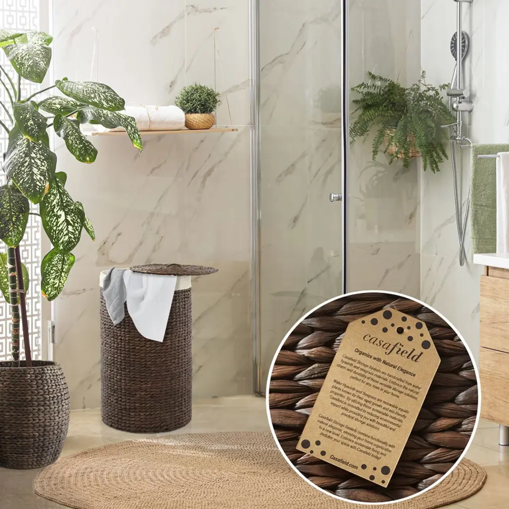 Say goodbye to clutter and hello to a tidier laundry organization solution with this contemporary-style round laundry hamper. This tall woven laundry basket is not just for storage but is a statement piece that elevates your home organizing efforts. Crafted from sustainable water hyacinth, this laundry hamper basket will add a touch of natural beauty to your home while supporting eco-conscious living. Keep dirty clothes, towels, and other items concealed and nicely organized until laundry day with Casafield's Laundry Hamper.