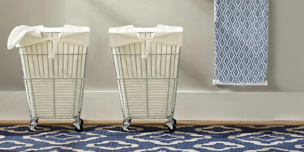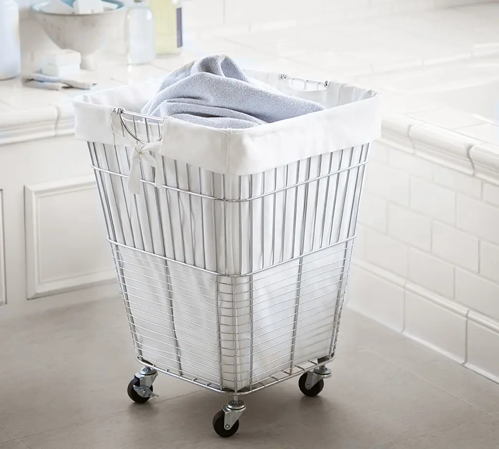 Poised on swiveling casters, our wirework hamper ferries loads of laundry to the washer or rounds up stray toys and shoes.