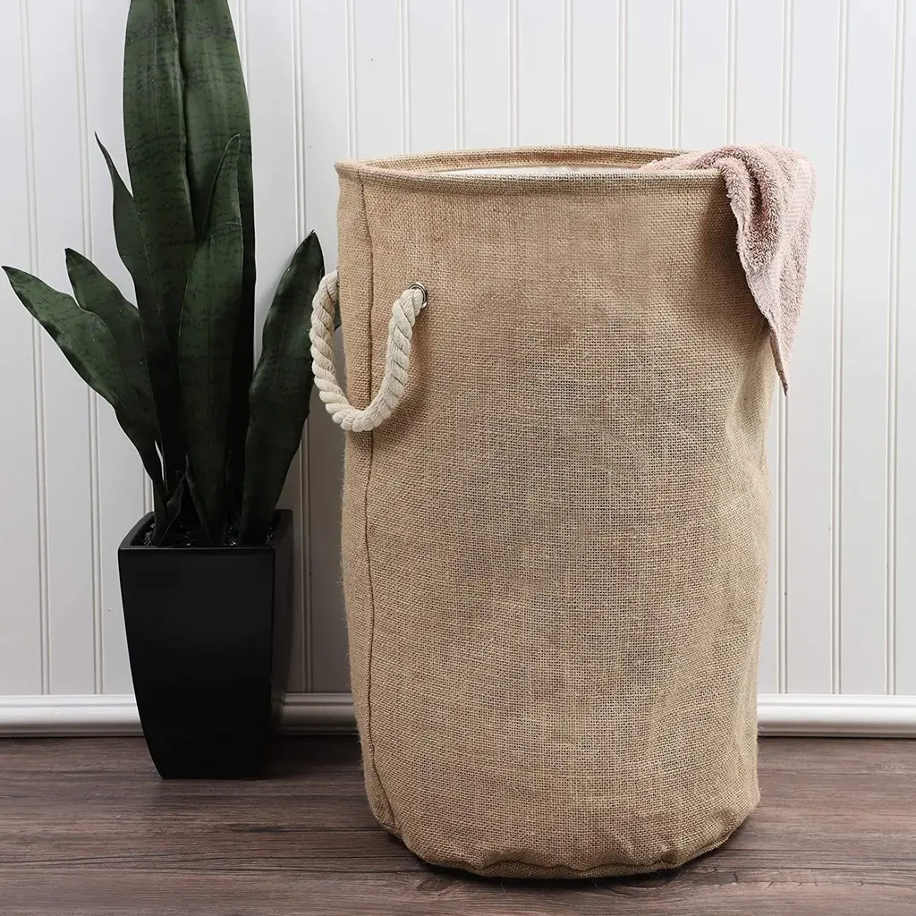 Keep your clothes and laundry clean and organized with this collapsable laundry basket made from jute material. This cute jute storage basket is great to store in bedrooms and laundry rooms to toss dirty or clean laundry in.