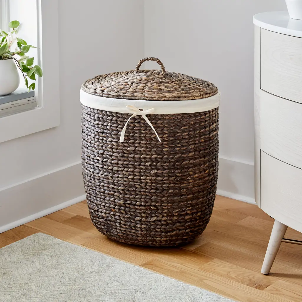 Woven from sturdy, rapidly renewable water hyacinth, this basket adds organic texture to any bedroom or bath.