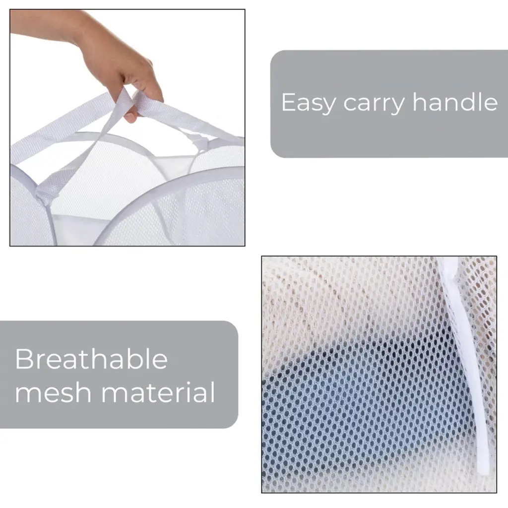 Deluxe Mesh Pop Up Square Laundry Basket Hamper With Side Pockets And Handles White