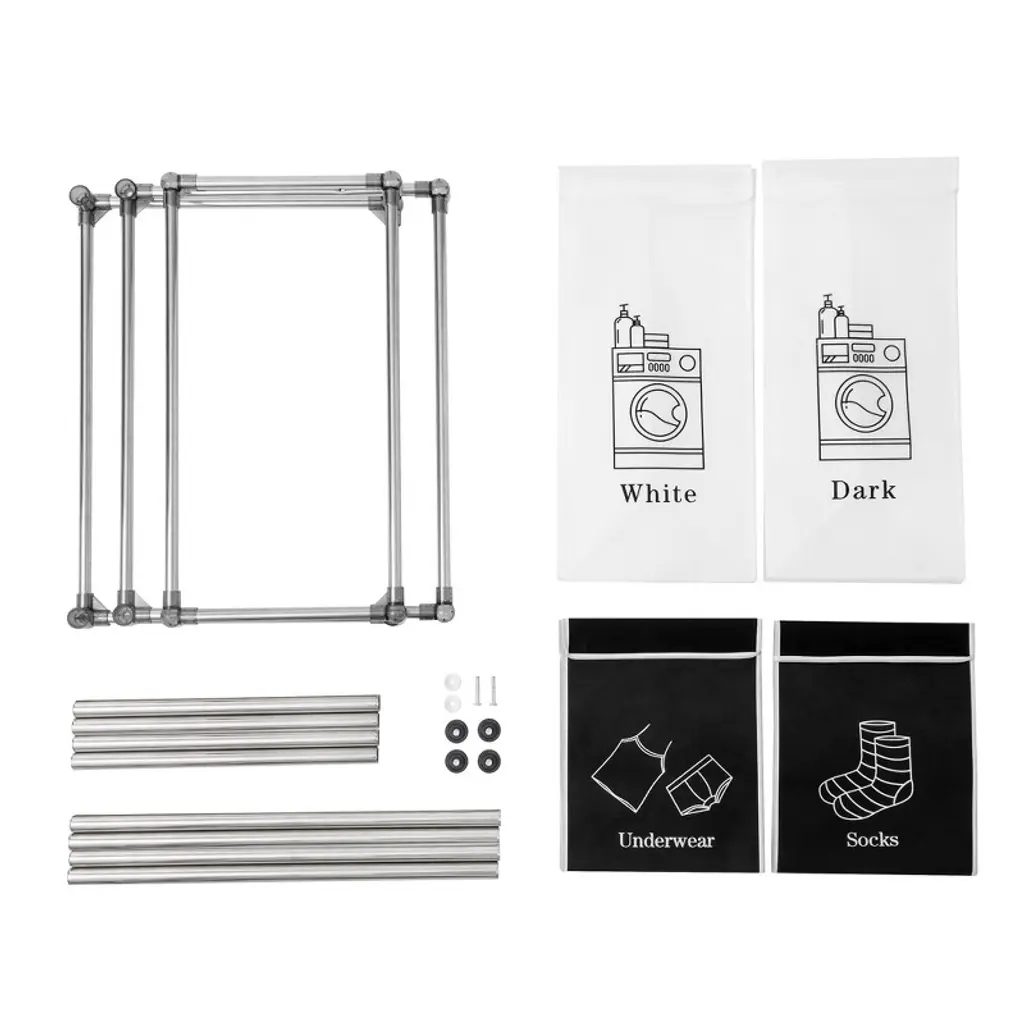 Efficiently organize your laundry with this 2-tier laundry hamper featuring 4 removable bags. Designed for sorting clothes by type and color, it’s perfect for keeping your laundry routine hassle-free. The sturdy frame and labeled compartments ensure convenience and functionality, making it an essential addition to any home.