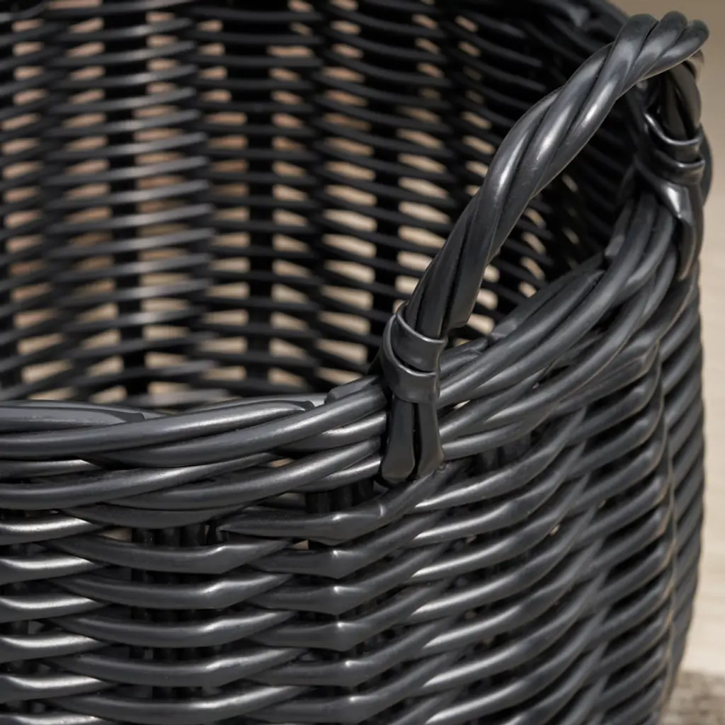 Fontoi Woven Wicker Multi-use Storage Basket With Handles, Round Laundry Basket, Laundry Baskets For Towel, Toys, Black, 13"*10.2"*13"