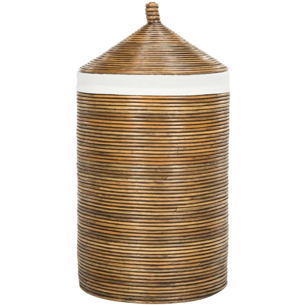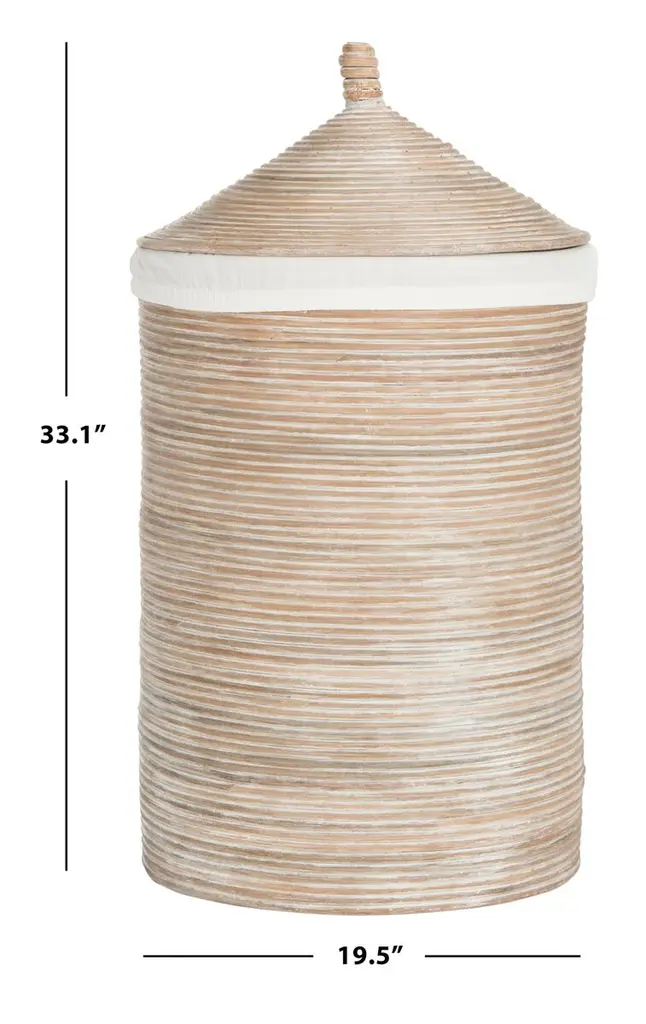 Inspired by a spa resort in Bali, this rattan storage hamper brings clean lines and minimalist style to the laundry room. Its liner keeps things tidy and organized while its stylish lid keeps things discreet.