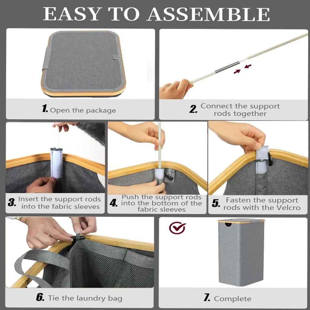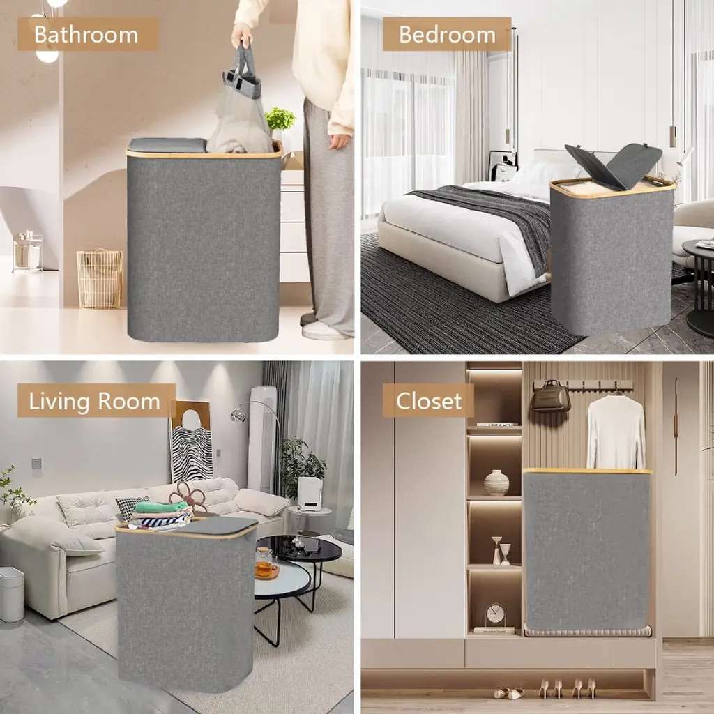 Bring order to laundry day with the BestParts collapsible hamper series. Each basket is stitched from thick waterproof Oxford fabric that blocks moisture and odors, while a fitted lid keeps dust out and dirty clothes out of sight. Detachable support rods let the hamper stand tall when in use yet fold flat to just 2 inches for storage under a bed, in a closet, or even in a suitcase. Smooth, rust‑resistant bamboo side handles make the lightweight frame easy to carry from bedroom to laundry room. Every hamper includes one or two machine‑washable mesh liner bags (depending on the size you choose), so you can lift out a full load or pre‑sort colors without moving the whole basket—keeping your space cleaner and your routine simpler. Choose the capacity that suits your household—from a slim single‑bin design ideal for apartments to a roomy double‑bin option that lets families sort lights and darks the moment clothes hit the hamper.