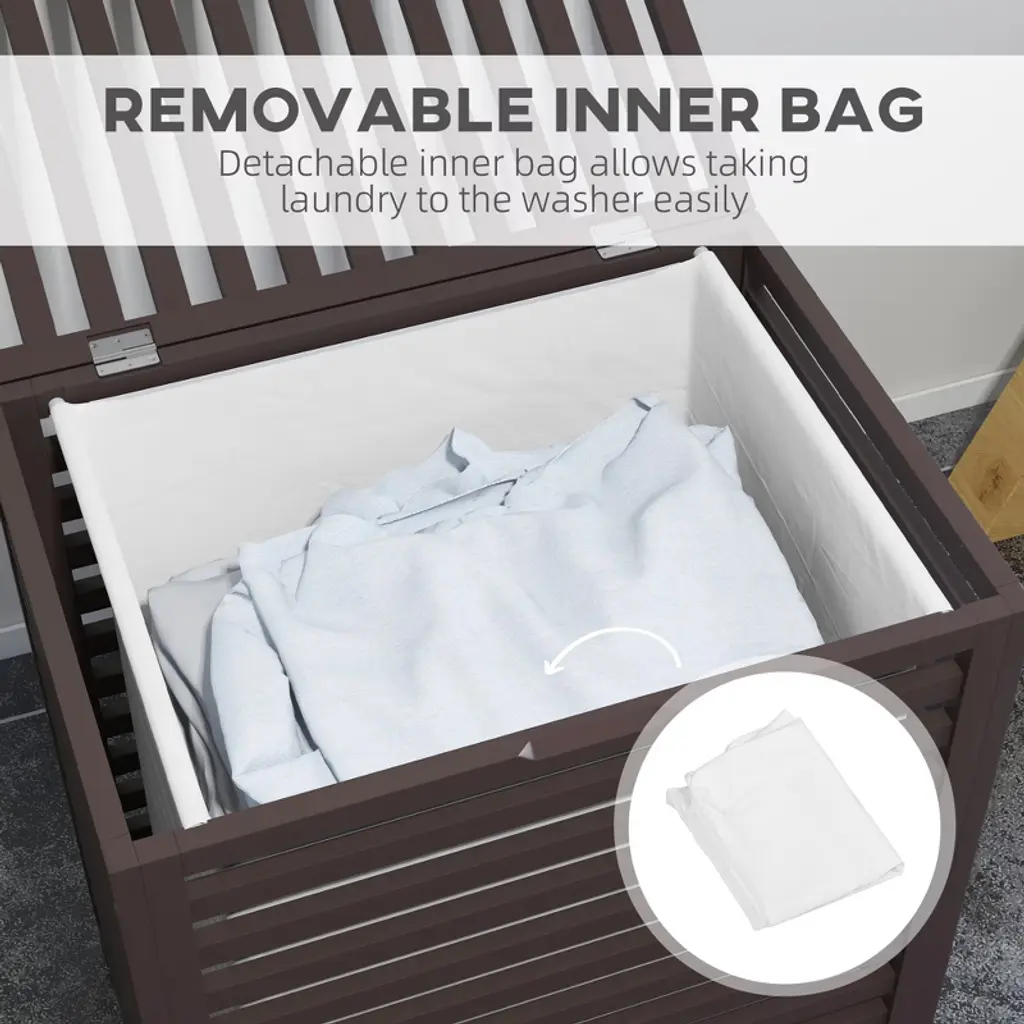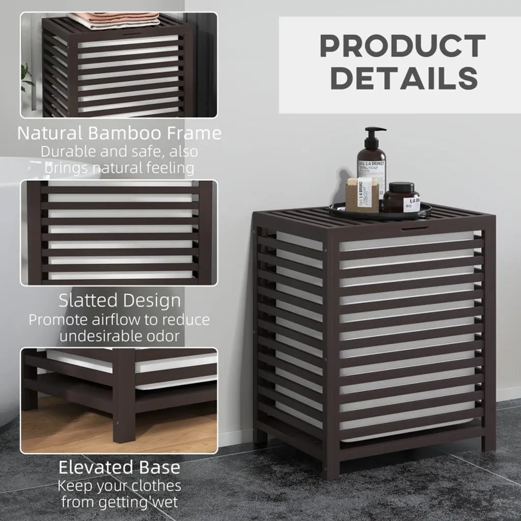 Gulches Homcom Coffee Bamboo Laundry Hamper: Lid, Removable Liner (19.75x14.25x23.5")