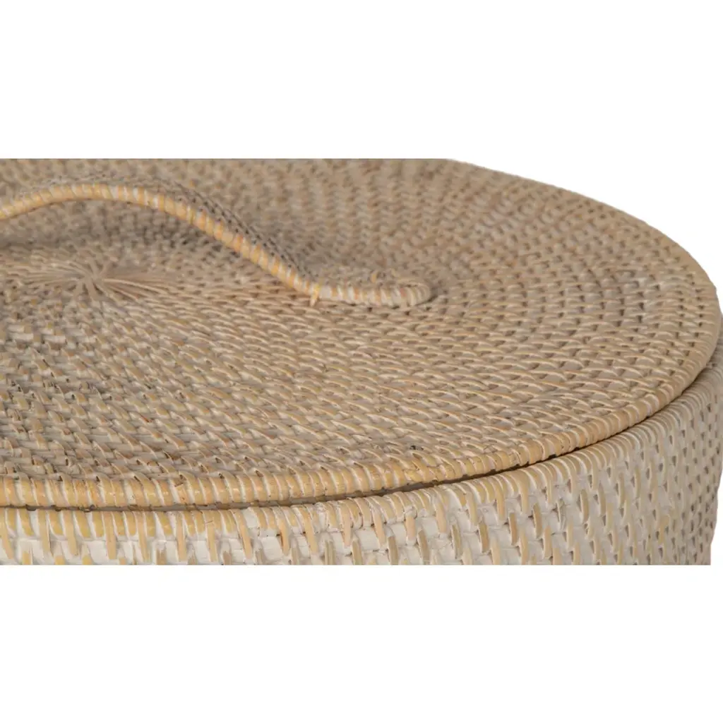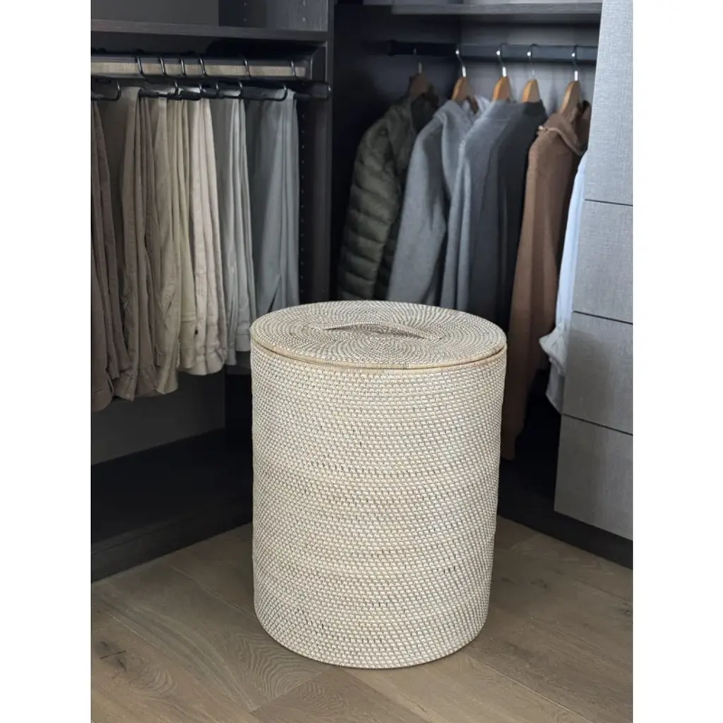 Hide laundry in plain sight with this handwoven rattan hamper. Its rounded silhouette and natural texture bring a coastal, heritage-inspired feel to any bedroom, bathroom, or laundry area. The removable cotton liner is machine-washable for easy care, while the matching lid keeps contents neatly tucked away and hidden. Built-in side handles make it easy to lift and carry from room to room. We love that it doubles as a stylish storage basket for blankets or toys.