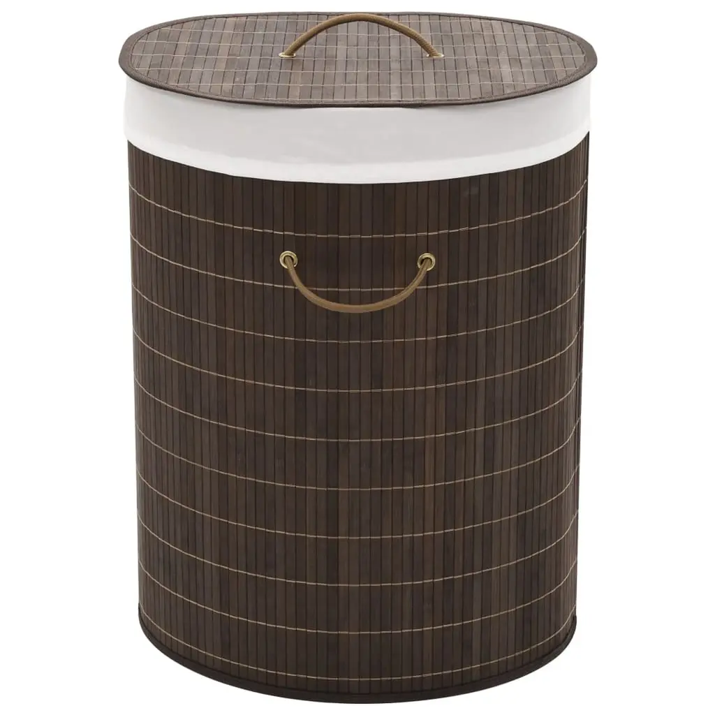 Homcom Double Laundry Basket With Lid, 26.4 Gallon Bamboo Laundry Hamper With Rope Handles, Clothes Hamper With Removable Liner, Brown