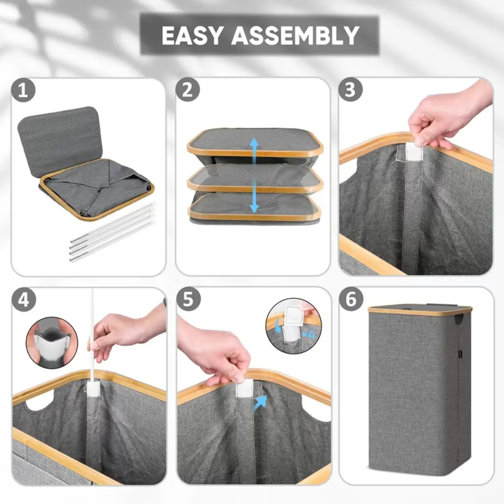 Streamline laundry days with the HOMLUX 2.8bu Hamper. Designed with a lift-top lid, sturdy internal support, and smooth bamboo handles, it keeps clothes out of sight while adding natural charm to any space.