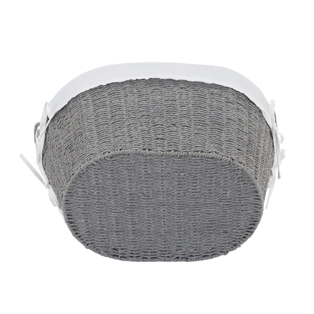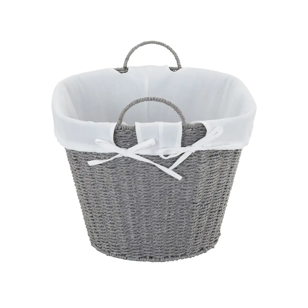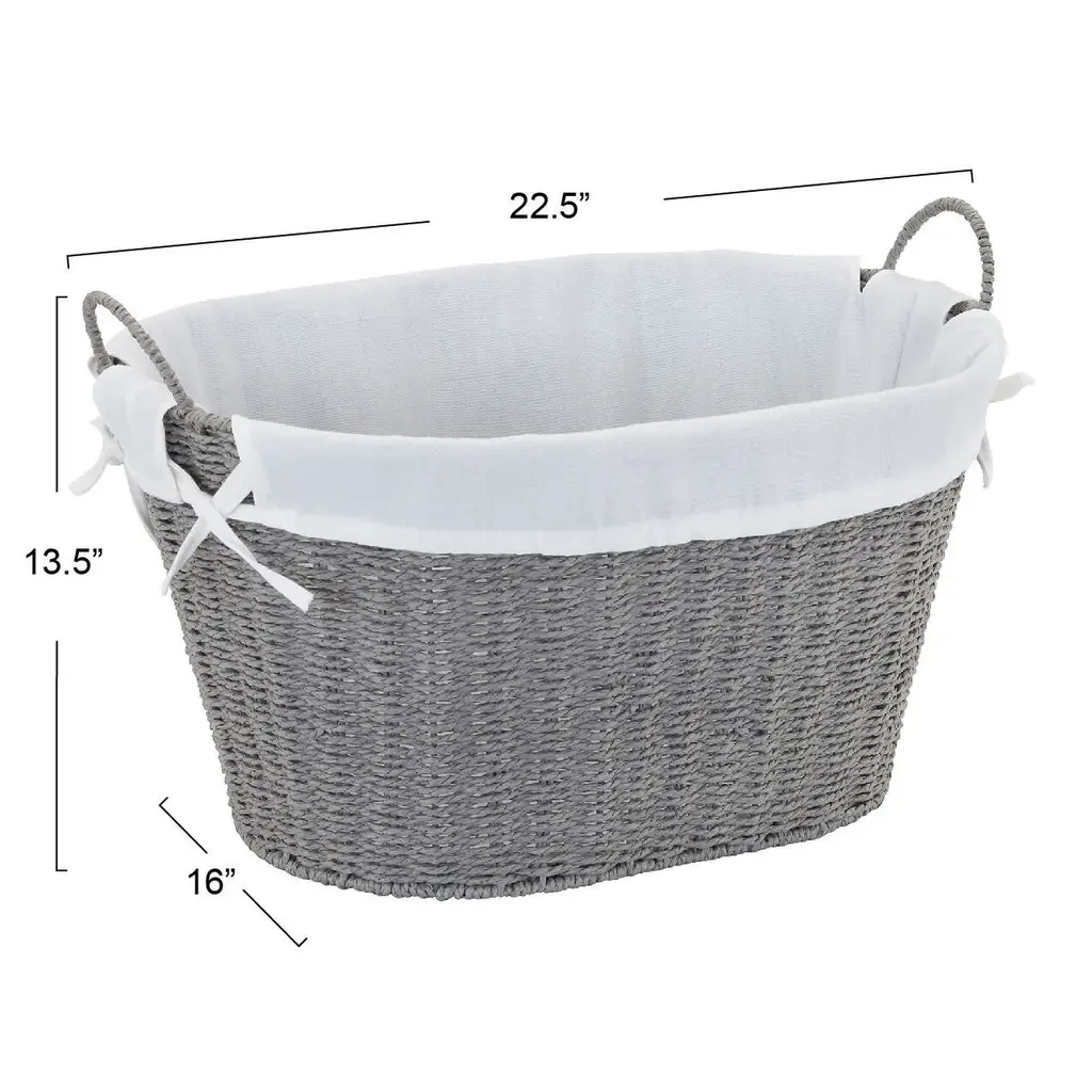 This woven laundry basket is a classic, timeless choice for laundry transport and storage. The basket is low with tapered sides that lead to a wide opening, making it easy to toss clothes in or pull them out. Large handles at either end of the basket make it easy to carry around the house. The laundry basket is made from tightly hand woven paper rope, which gives the basket a woven look with a slightly softer material. The paper rope is coated for added durability and protection and the basket has a wire metal frame. The laundry basket has a liner made from a poly cotton blend, which protects clothes from potentially snagging on the paper rope. It’s also fully removable and washable, so you can make sure it stays fresh and clean, even while it’s holding laundry that isn’t quite as fresh and clean. Though this basket is ideally used for laundry, it’s attractive and practical enough to use in any room in the home to store nearly anything. Keep it in a bedroom or living room to store magazines, pillows and extra throw blankets. Use it in a closet to rein in miscellaneous items. Use it in a craft room or study to store supplies and projects. There’s no end to the ways you can use this basket in your home. With a timeless, natural look, this woven laundry basket is bound to fit right into any home and act as a stylish staple for years to come. Features: