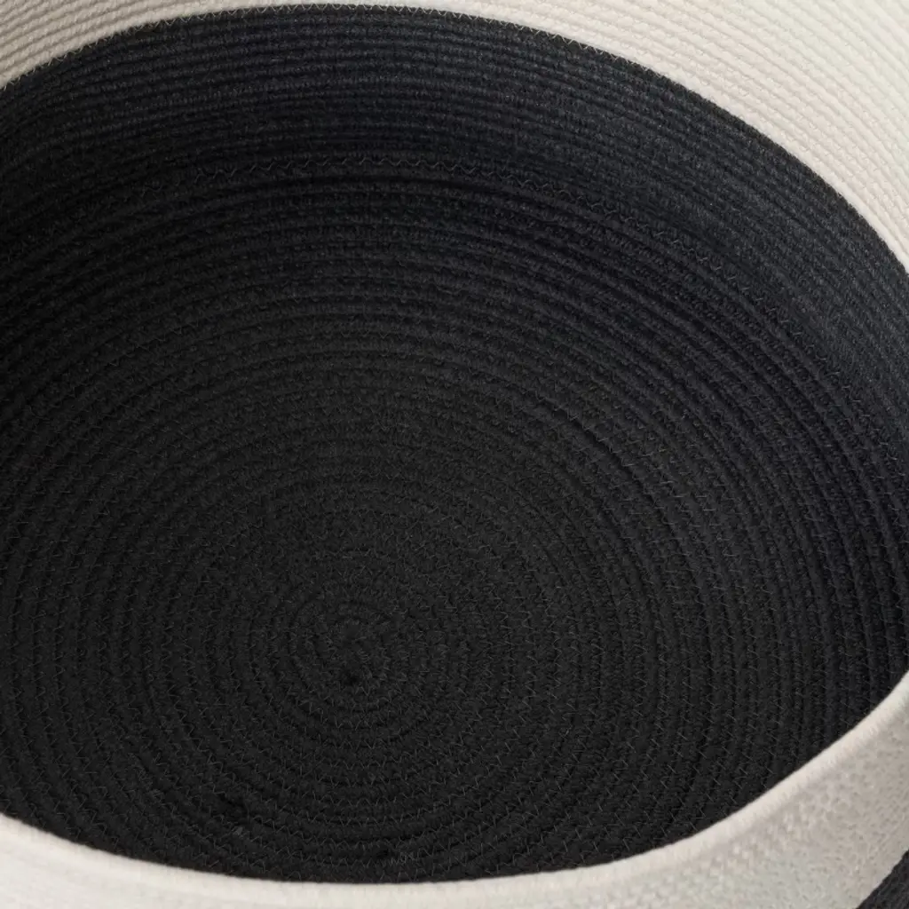 This cotton laundry and storage basket combines functionality with timeless style, making it a versatile addition to any home. Measuring 21.7" x 21.7" x 13", its spacious round design provides generous room for laundry, blankets, toys, or daily essentials. Crafted from high-quality cotton, it offers a soft yet durable structure that stands up to everyday use. The neutral white and brown color palette complements a wide range of décor styles, from modern to rustic. Built-in sturdy handles make transporting items effortless from room to room. Whether used in the bedroom, laundry area, or living space, this basket helps keep your home organized in style.